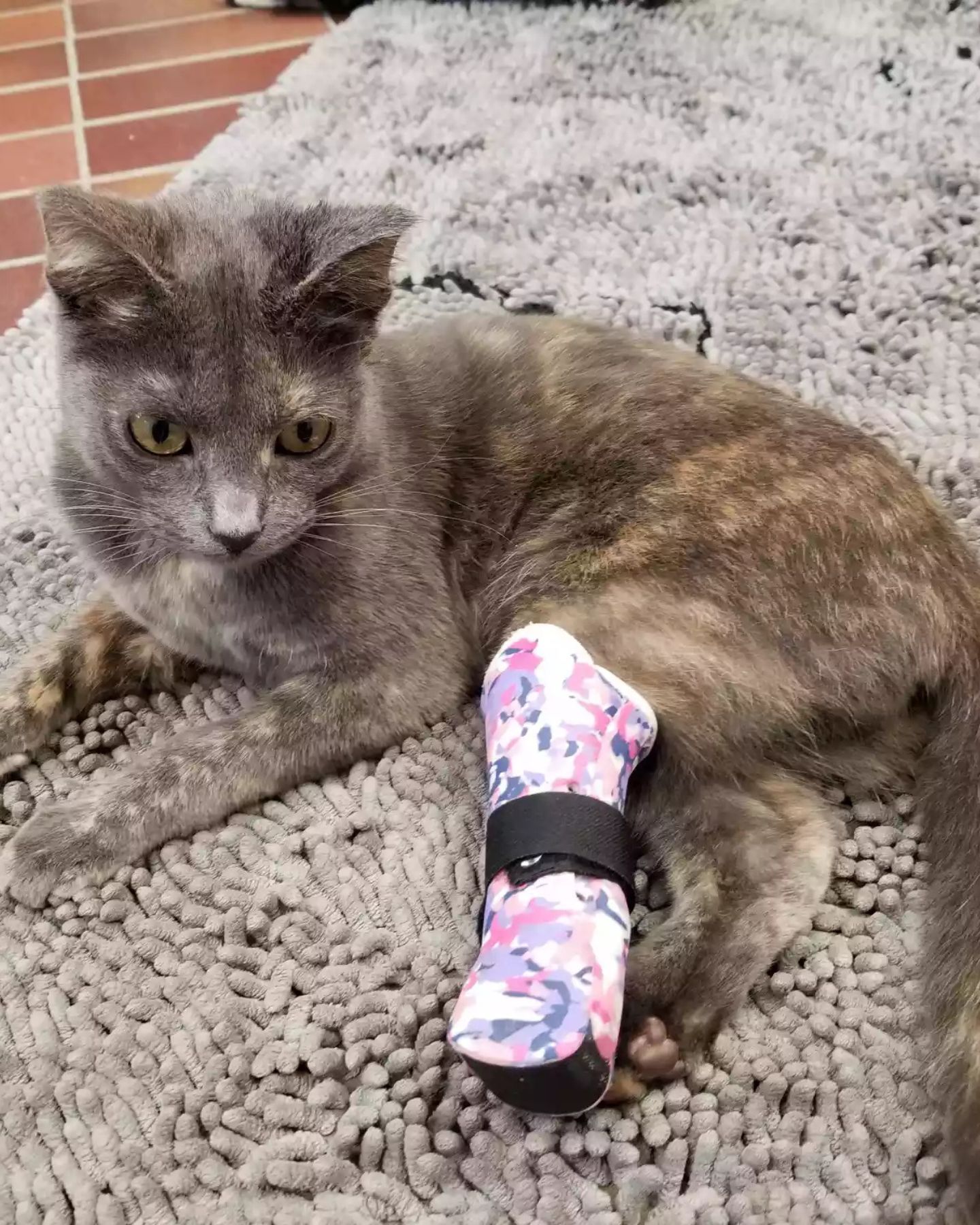 Thankfully, after months of splints and physical therapy, her condition began to improve. To everyone’s relief, they realized that only her back left leg would need to be removed.