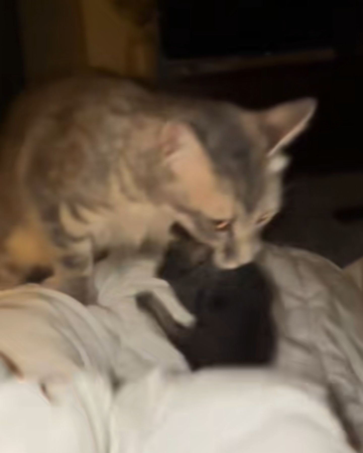 After all, even the most devoted moms deserve a little break from time to time. And in this case, her “hooman grandma” was more than happy to step in for some kitten-sitting duty.