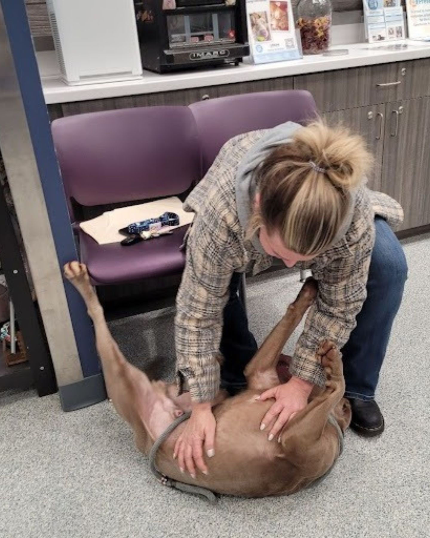 When she arrived, the staff brought Kano out to meet her. He trotted into the room, curious but calm, not realizing the surprise waiting for him.