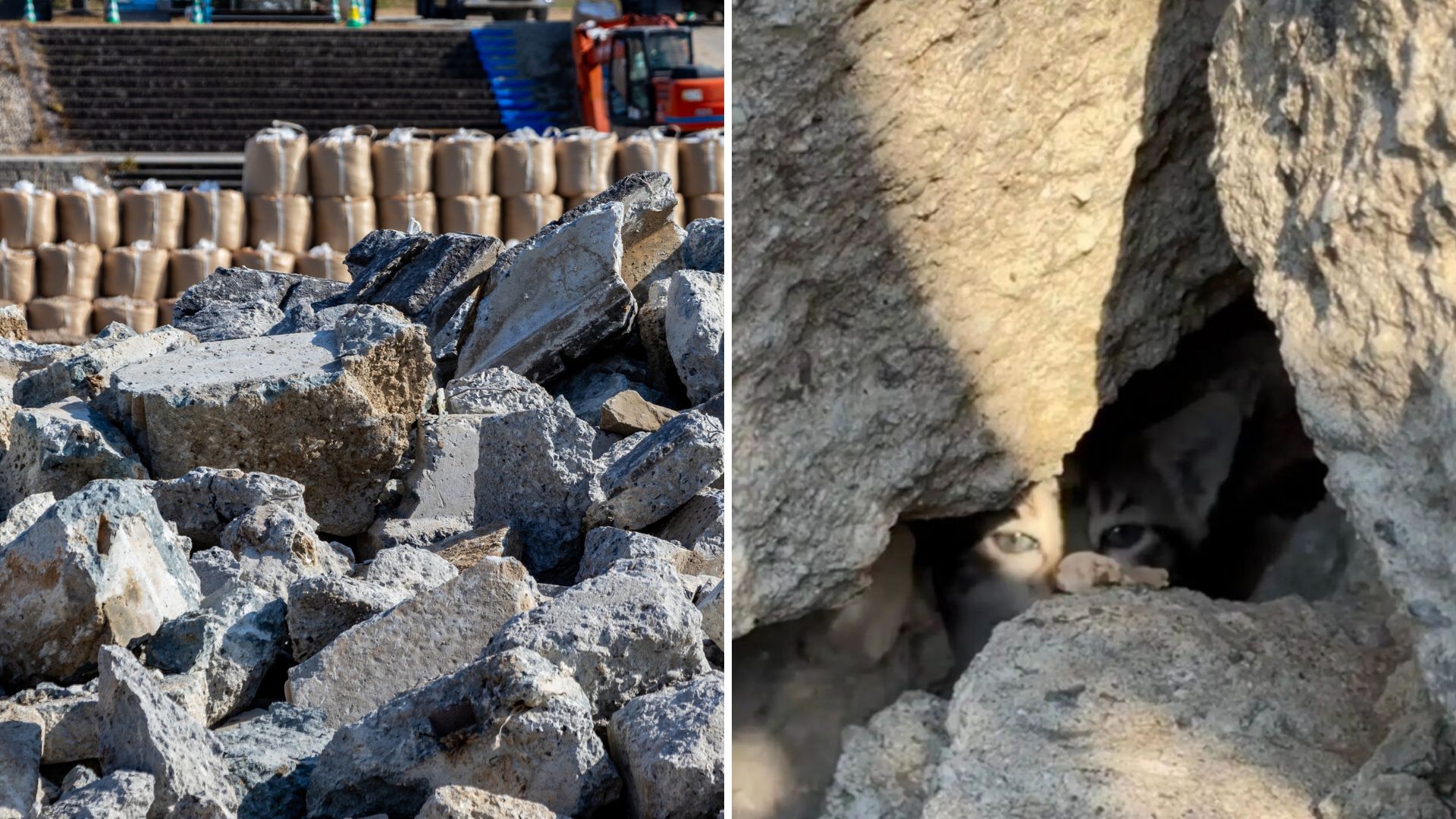 Using Churu sticks to lure the frightened feline, they managed to coax the kitten from the rubble. Relief washed over them, but the surprise wasn’t over.