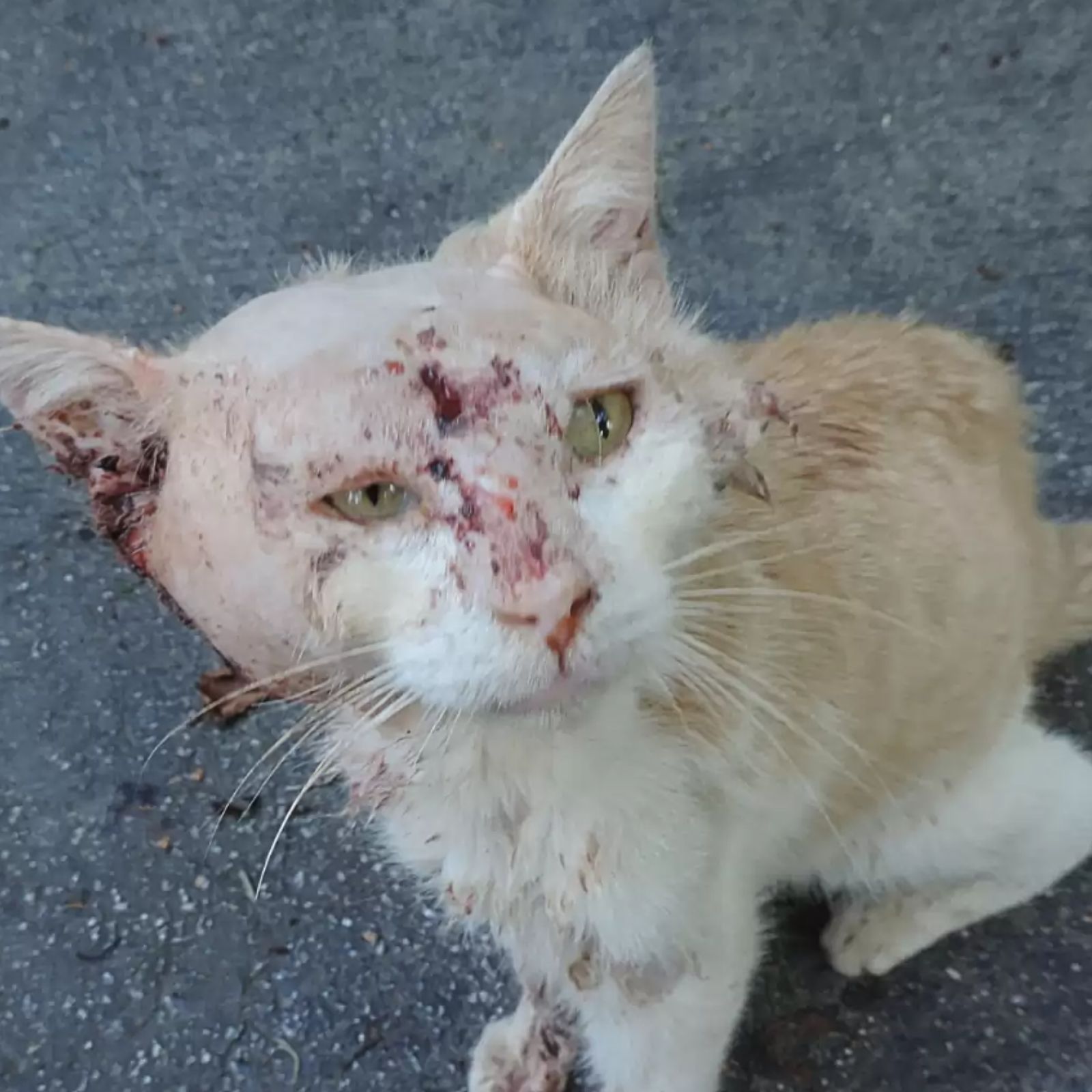 The cat looked as though he had suffered a brutal fight or been struck by a car, left alone to survive in dire conditions. His state was utterly heartbreaking.