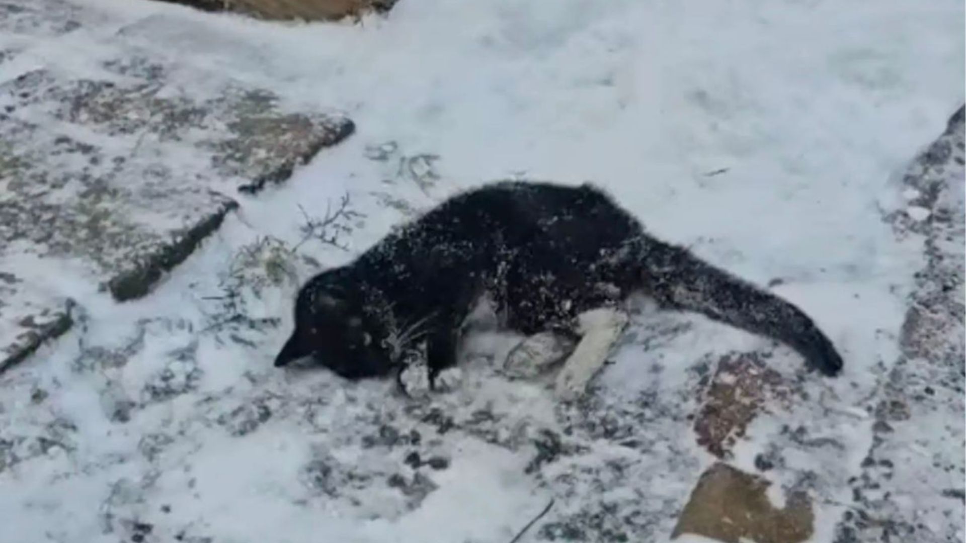 But knowing time was running out, she rushed to the location, praying it wasn’t too late. When she arrived and saw the cat lying helplessly in the snow, her heart shattered.