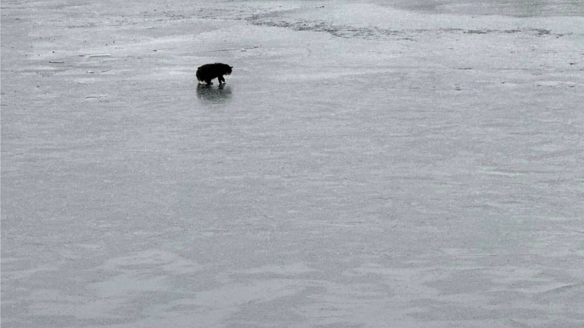 It was a cat, caught in the icy water about 30–40 feet from the bank. Westford Animal Control later explained in a Facebook post:
