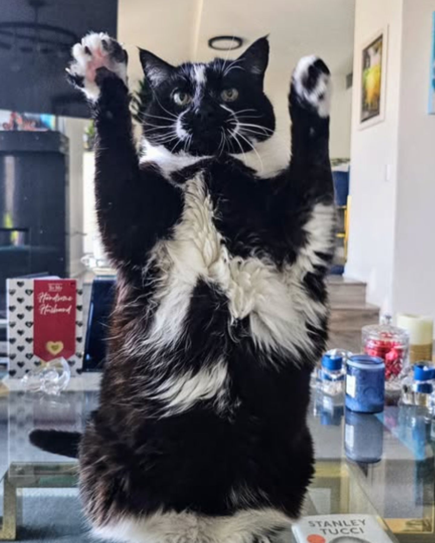 Without hesitation, she’d shoot her paws straight up into the air like a champion celebrating a goal, as if she had been waiting all day to show off.