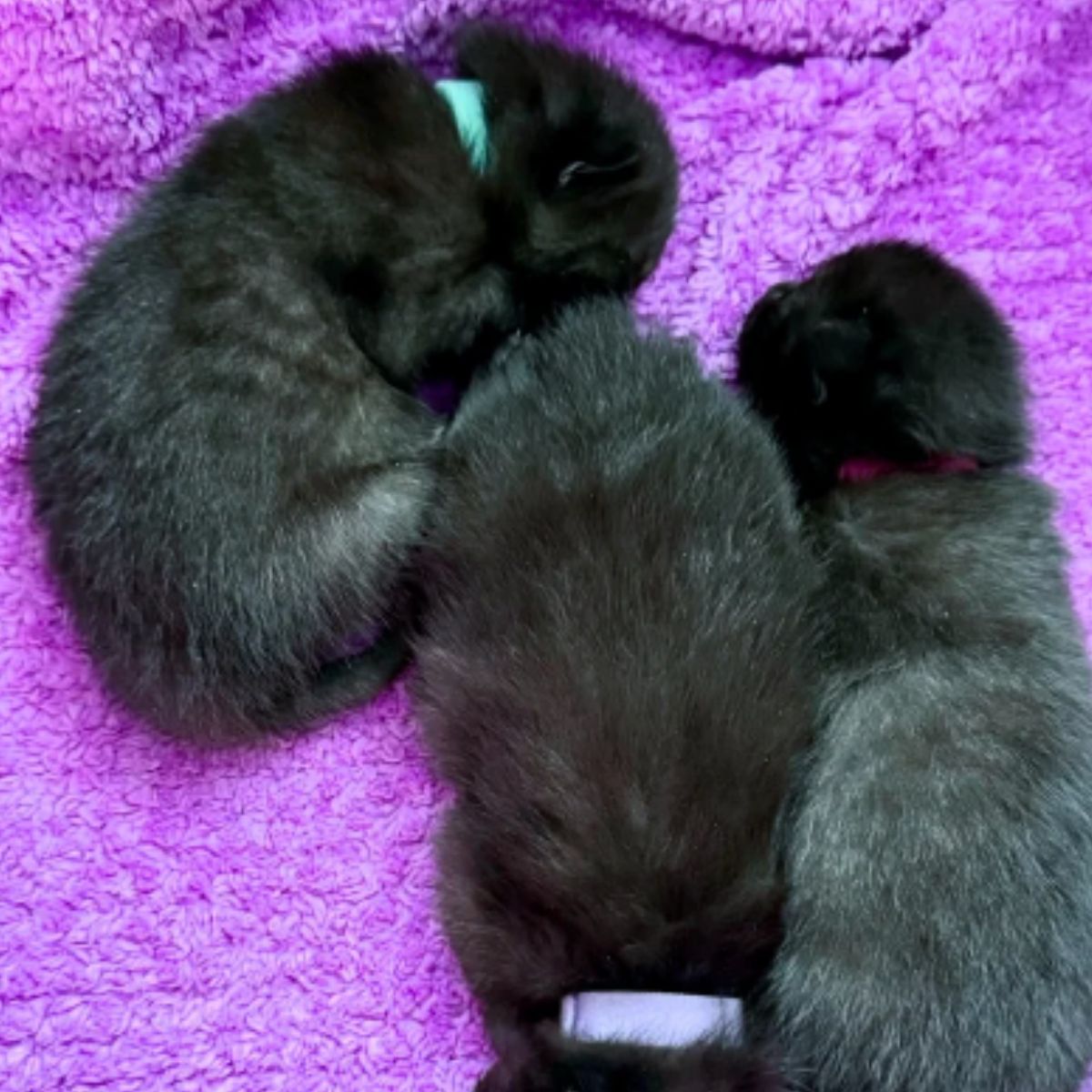 Within only a few days, the three little house panthers had transformed into plump, round bundles of fur, their full bellies showing just how content and well-fed they were.