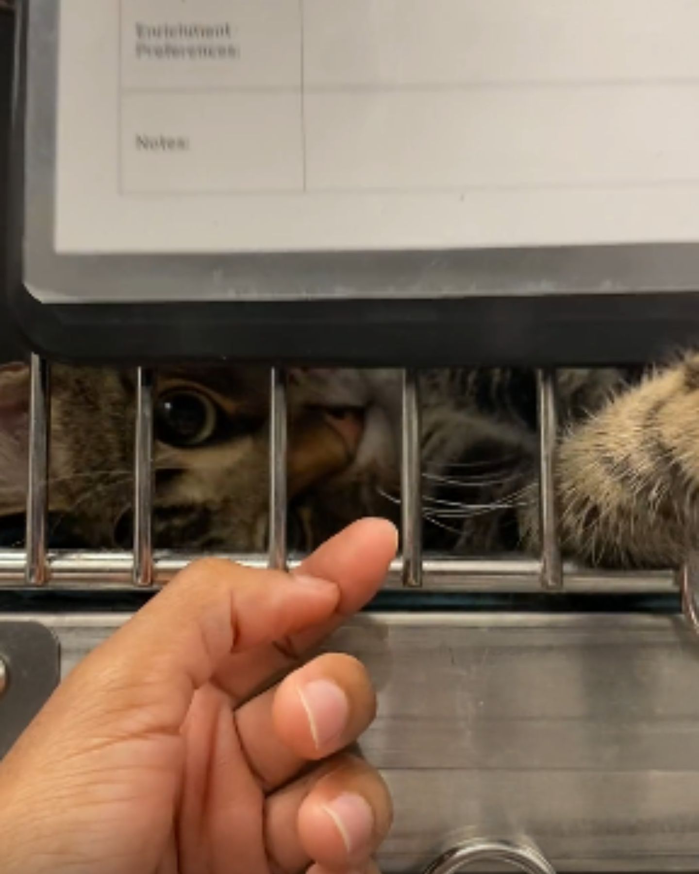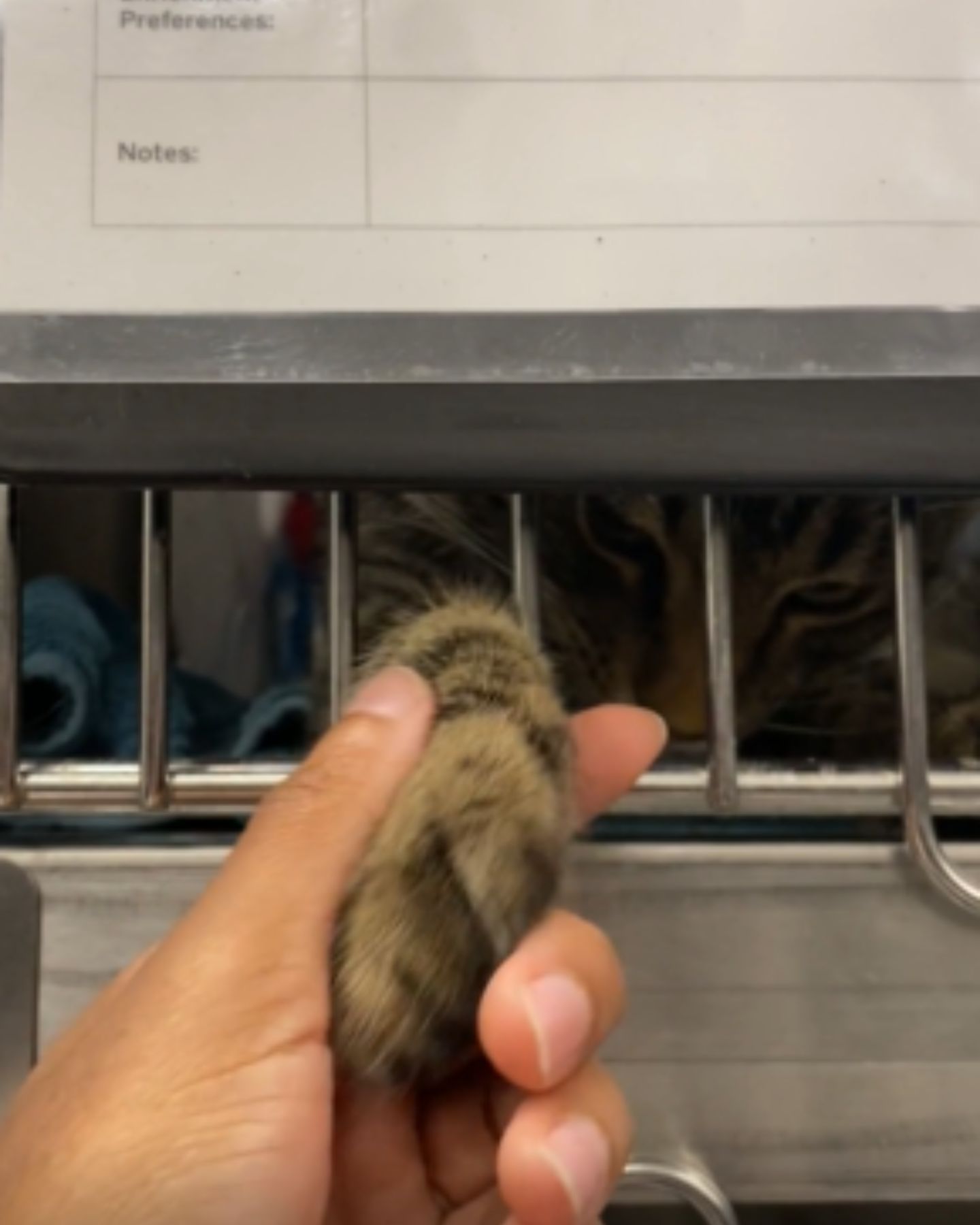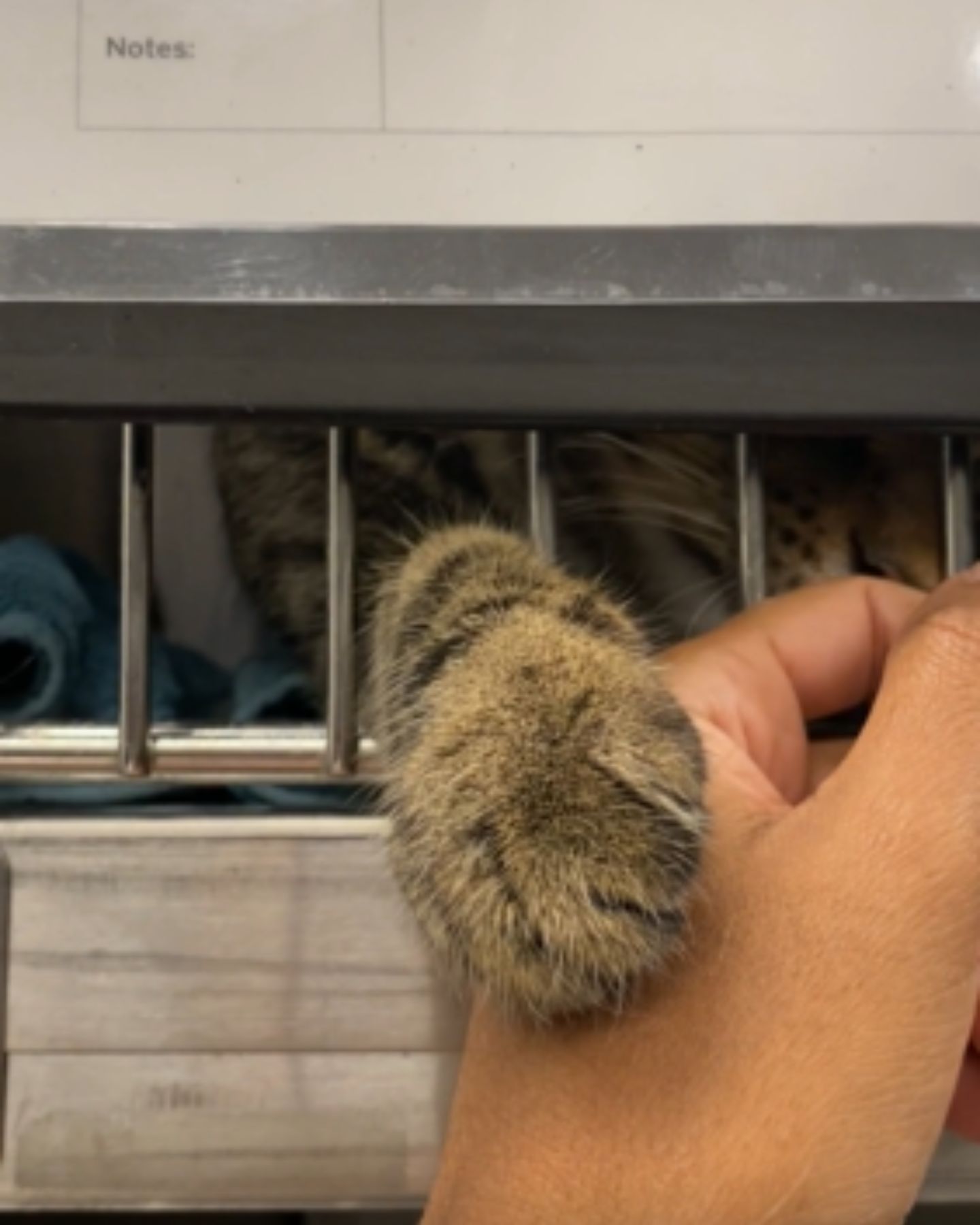 And when the visitor begins to pull away, Spinach reacts instantly, stretching his paw out again, desperate to hold on to the connection for just a little longer.