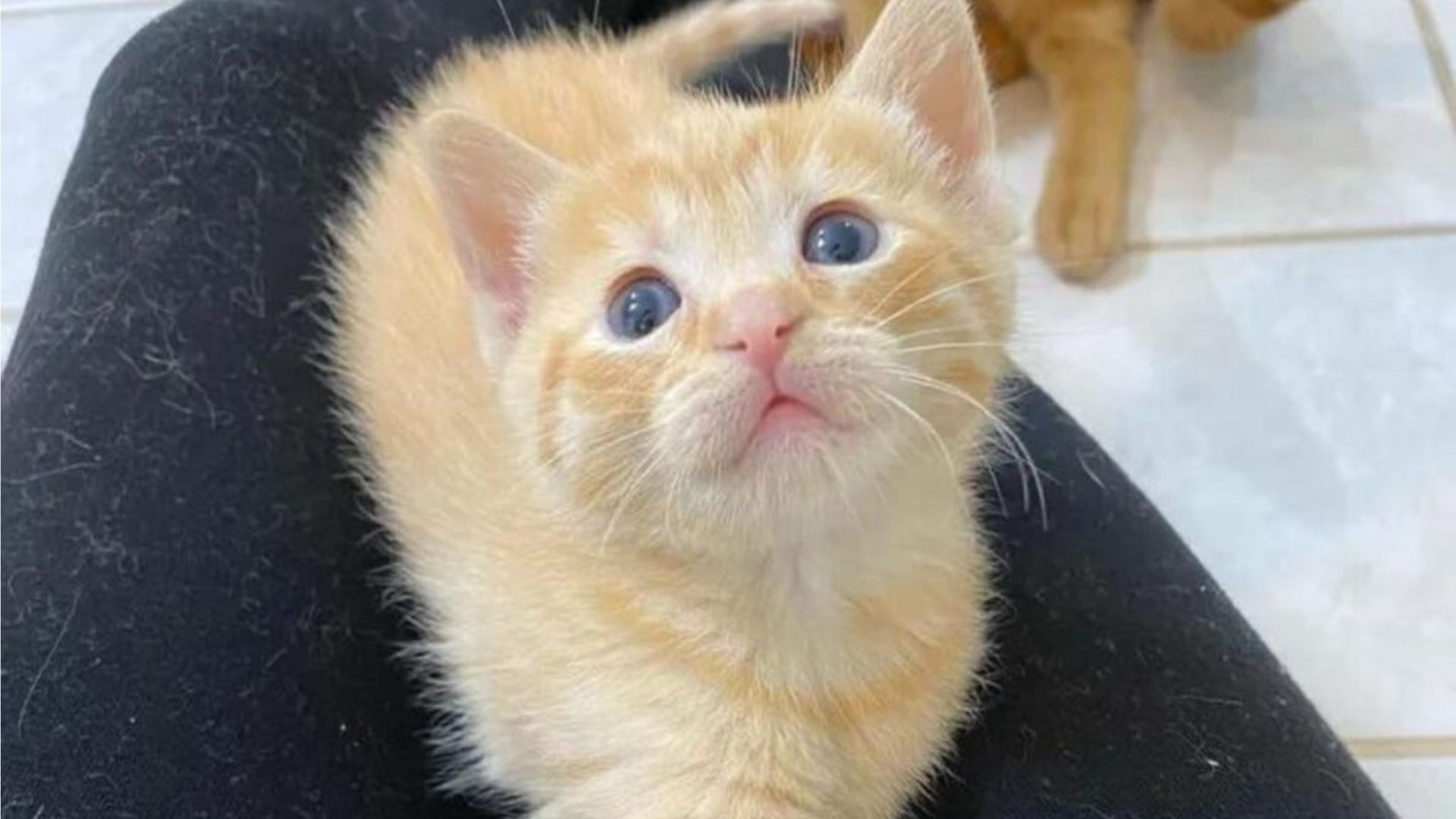 yellow kitten in a woman's lap