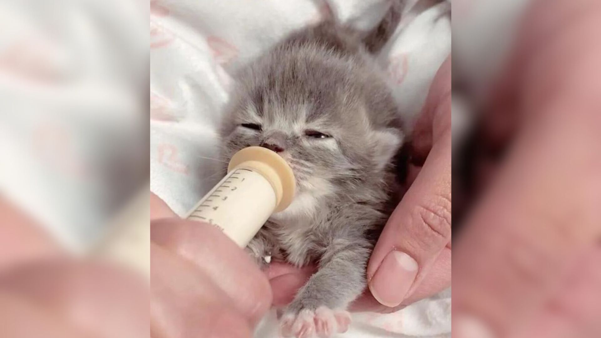 10-Day-Old Kitten Found Struggling On California Streets Now Sleeps Warm And Loved Every Night