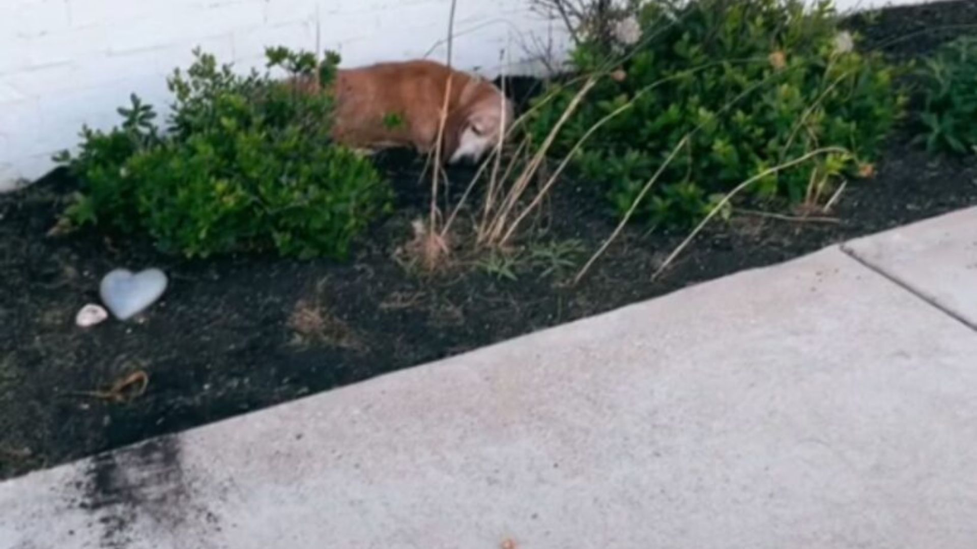 They set out a bowl of water and offered him food, watching as he stretched out by their planter as if he had lived there his whole life.