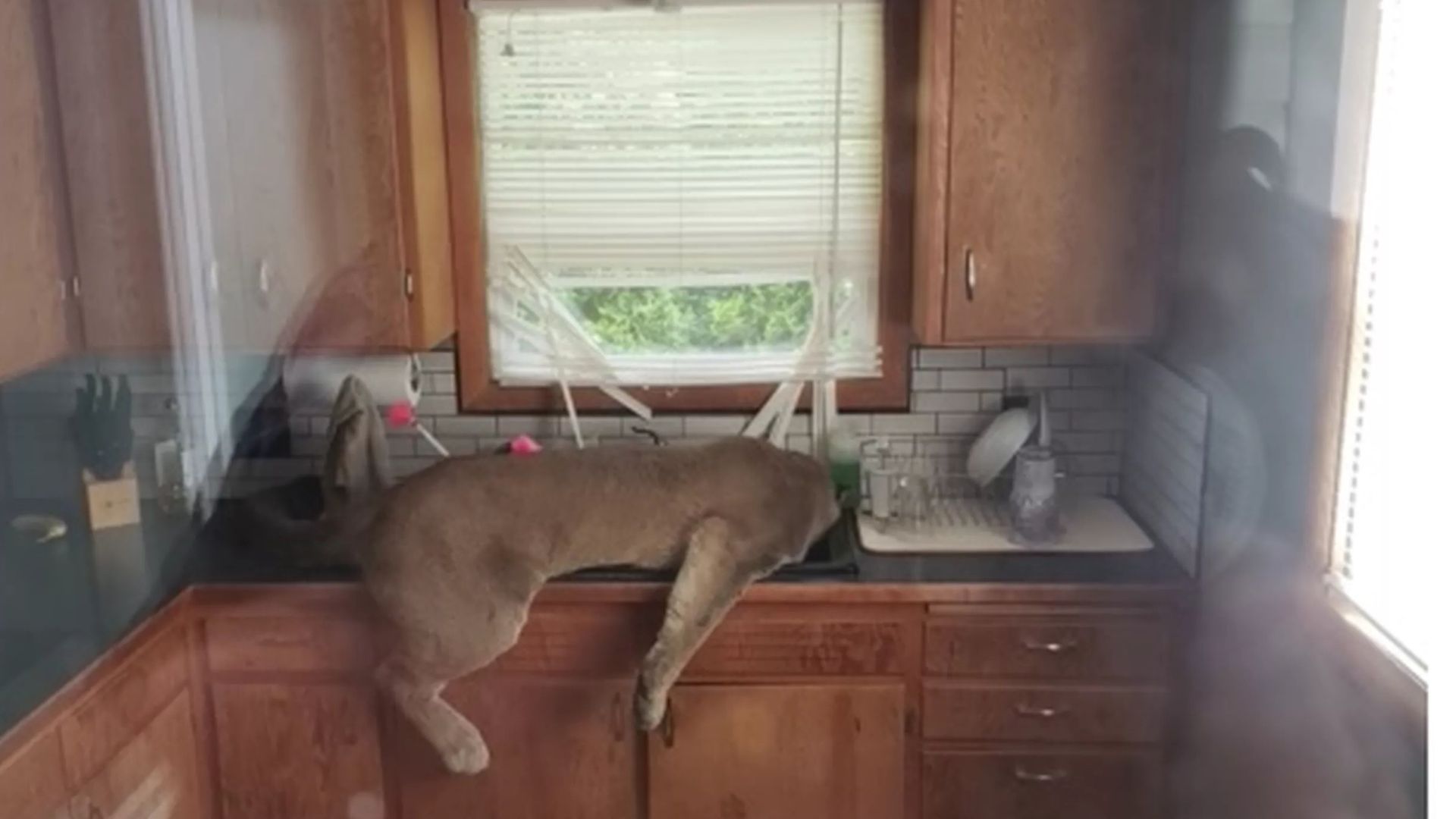 Wildlife officers managed to hit the cougar with a tranquilizer dart, but before the sedative kicked in, the big cat tried to escape through the window above the sink.