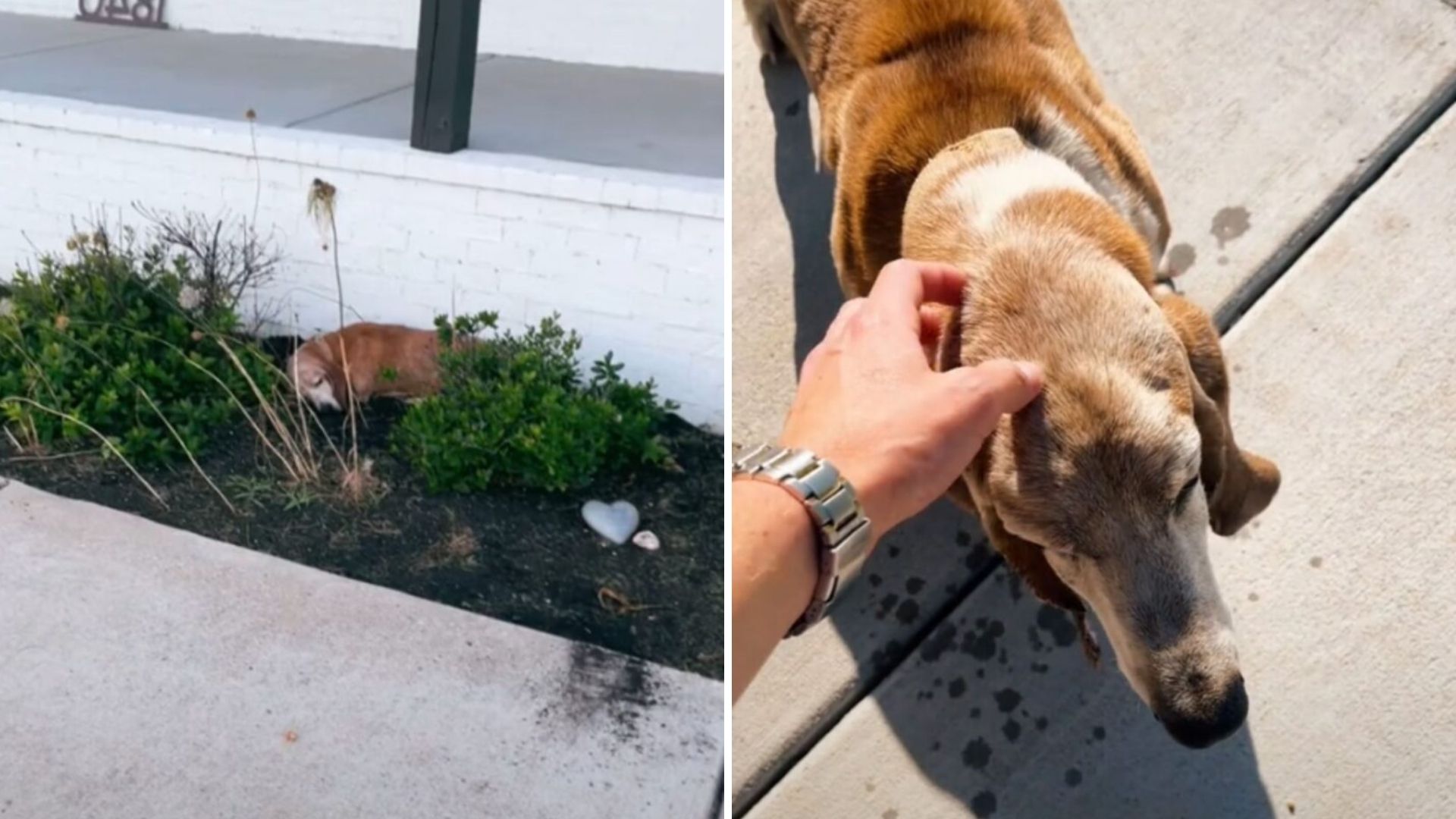 They set out a bowl of water and offered him food, watching as he stretched out by their planter as if he had lived there his whole life.