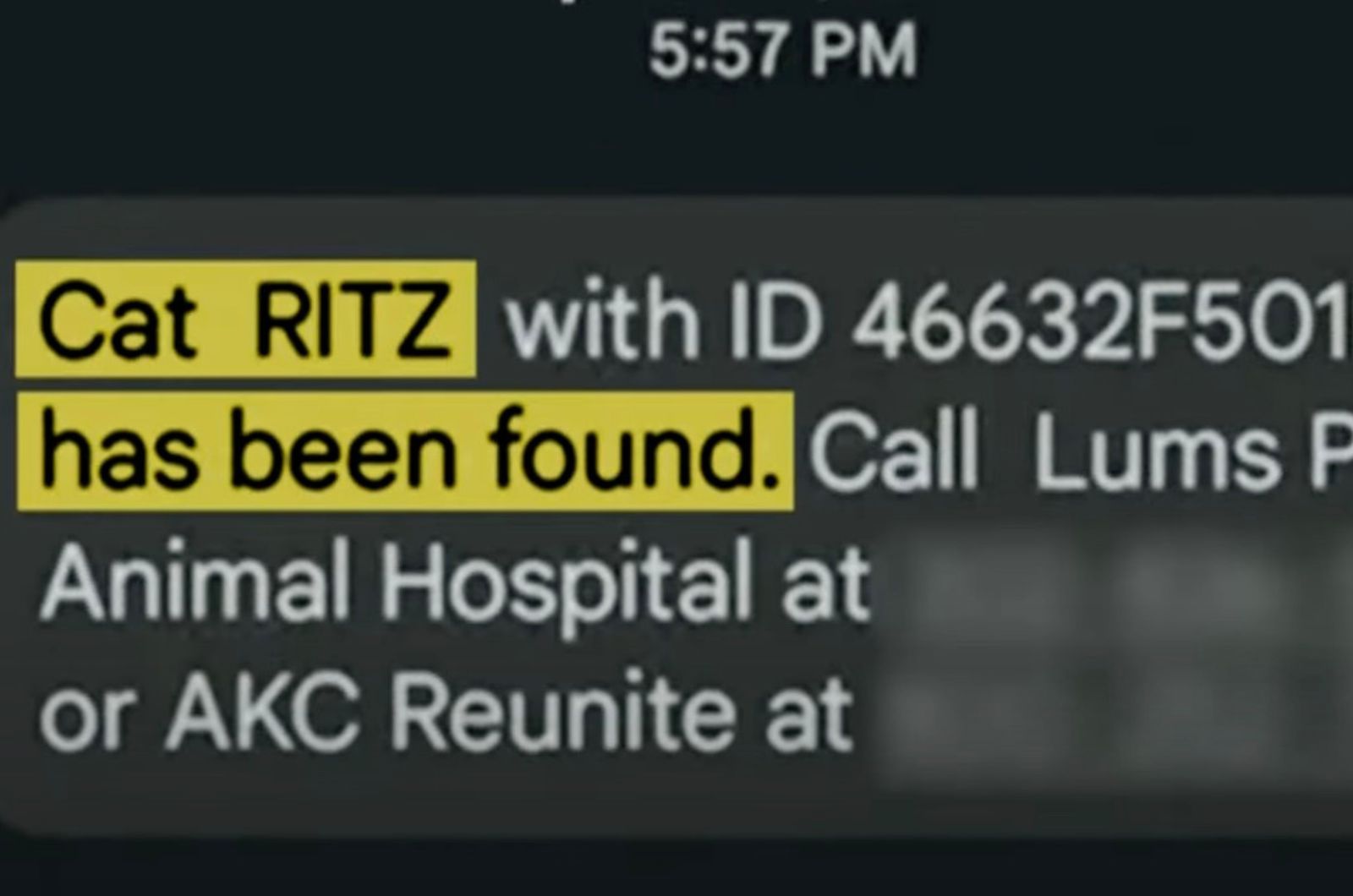 That simple step connected him back to Jason and Liz, triggering the message that their long-lost cat had finally been found.