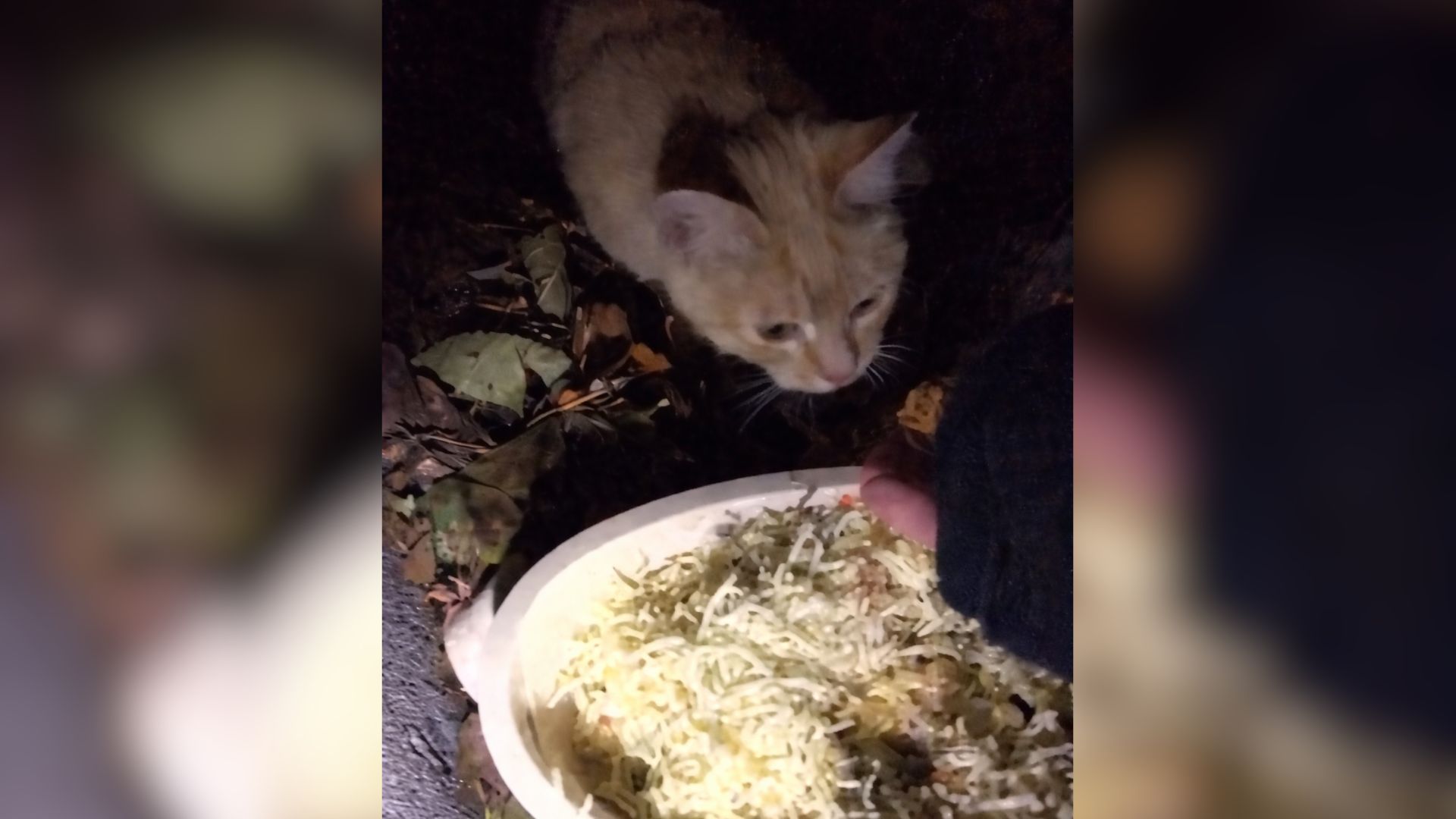 Hunger eventually won over fear. Slowly, the kitten crept out, inch by inch, and accepted the food.