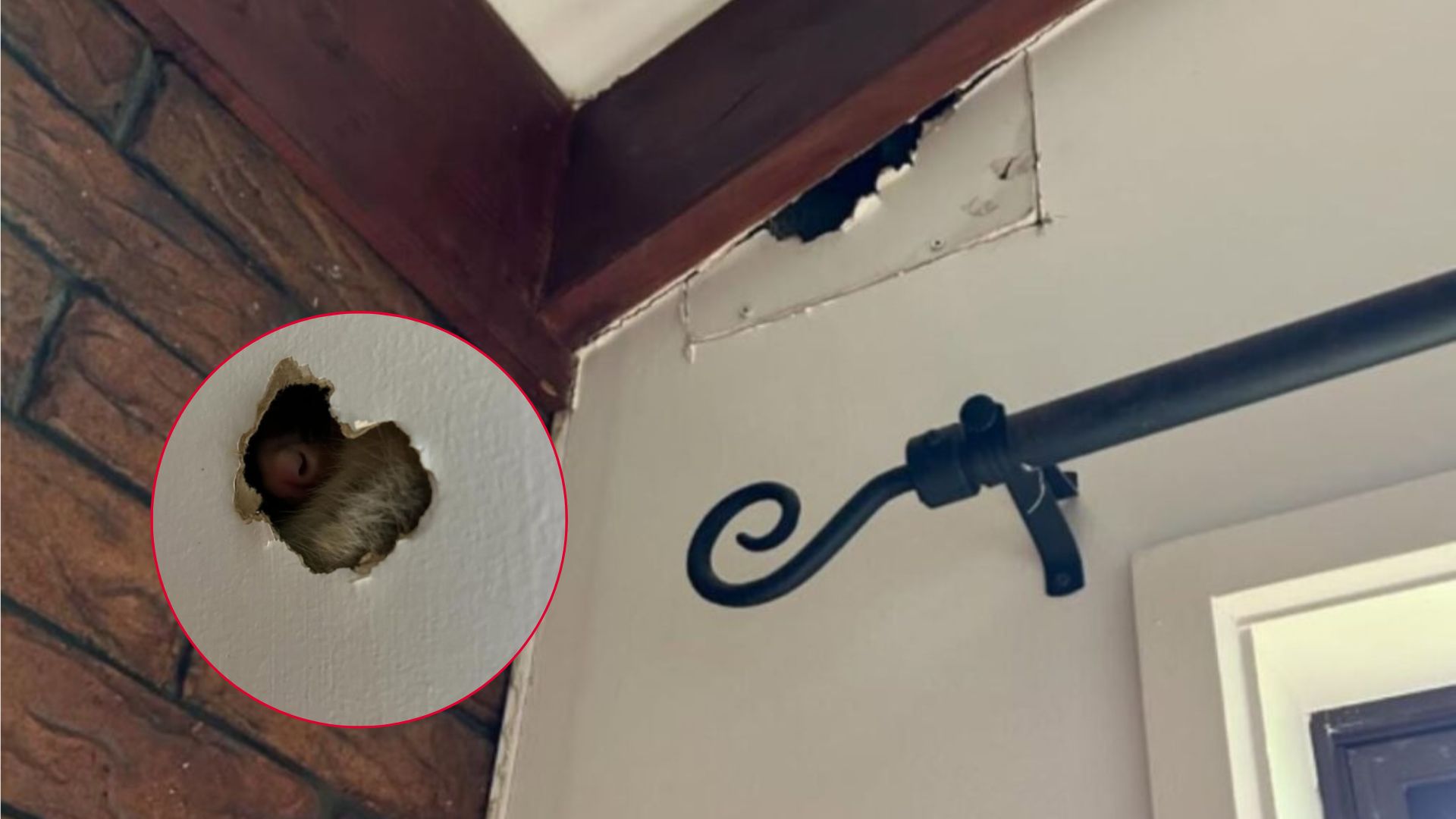 Ohio Couple Notices Their Dog Freaking Out At Wall Hole, Then Suddenly A Tiny Nose Peeks Out