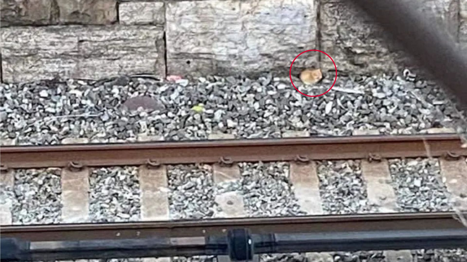Drawn to the edge of the platform, she looked down, and that’s when she saw him. A tiny orange kitten, caught between gravel and stone, was crying his lungs out.