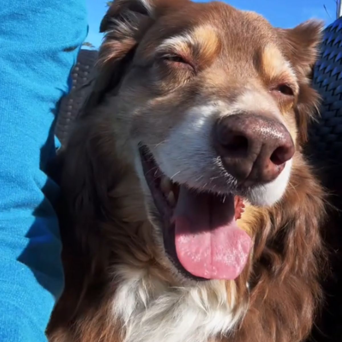 And when things get hard, there’s always one thing that brings her back: that song. The moment “You Are My Sunshine” plays, Rosie relaxes. Her tail wags, her eyes brighten, and it feels like, for a moment, the fog lifts.