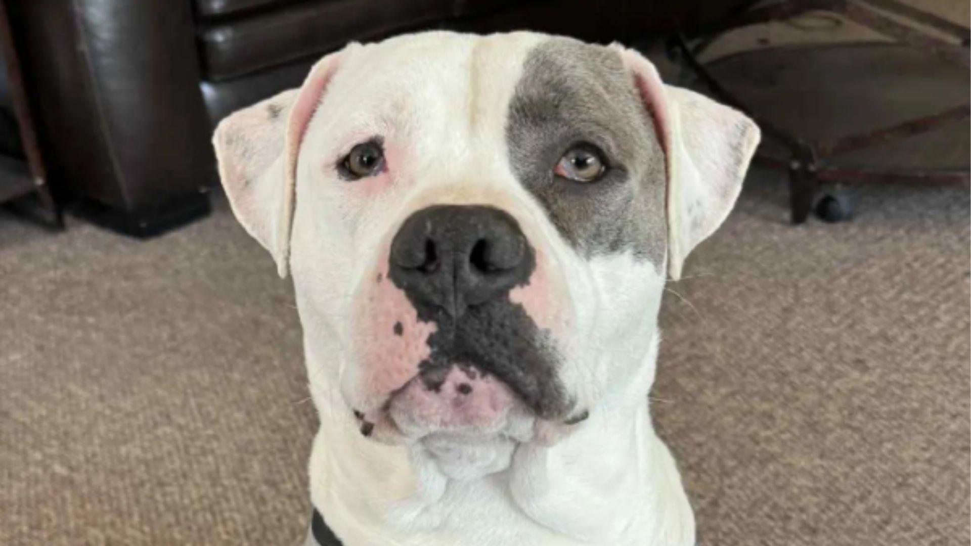 That’s when Elena came across his photo online. She already fostered dogs, but something about Chimney’s face stopped her in her tracks.