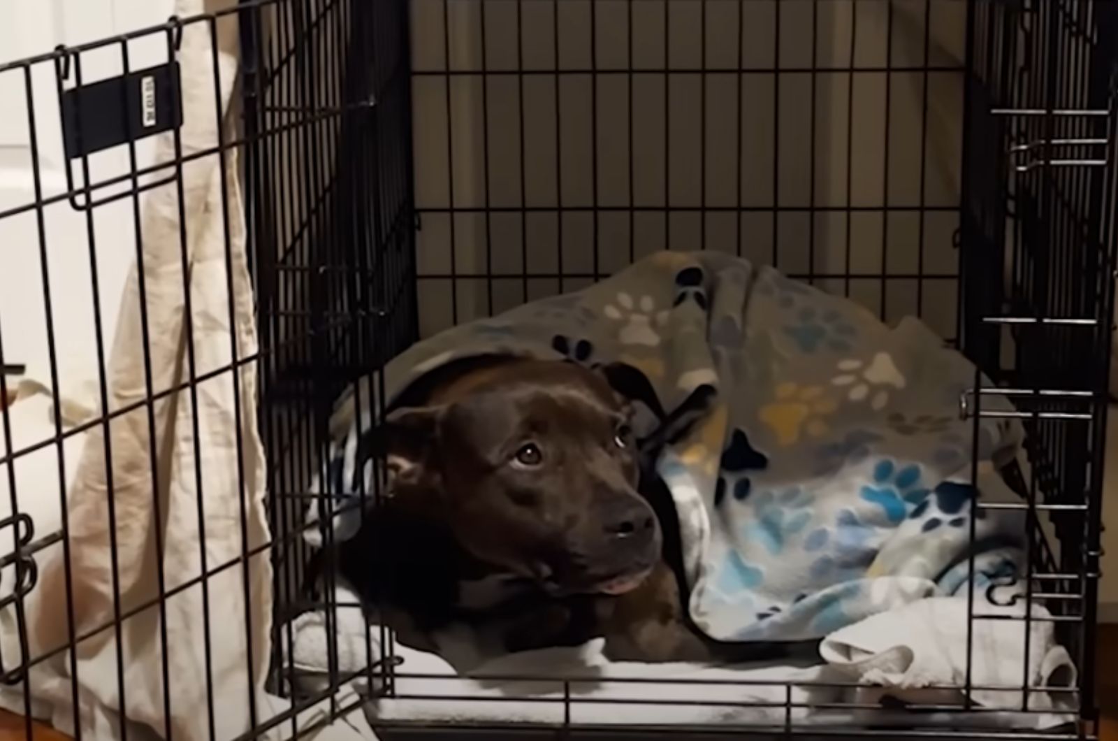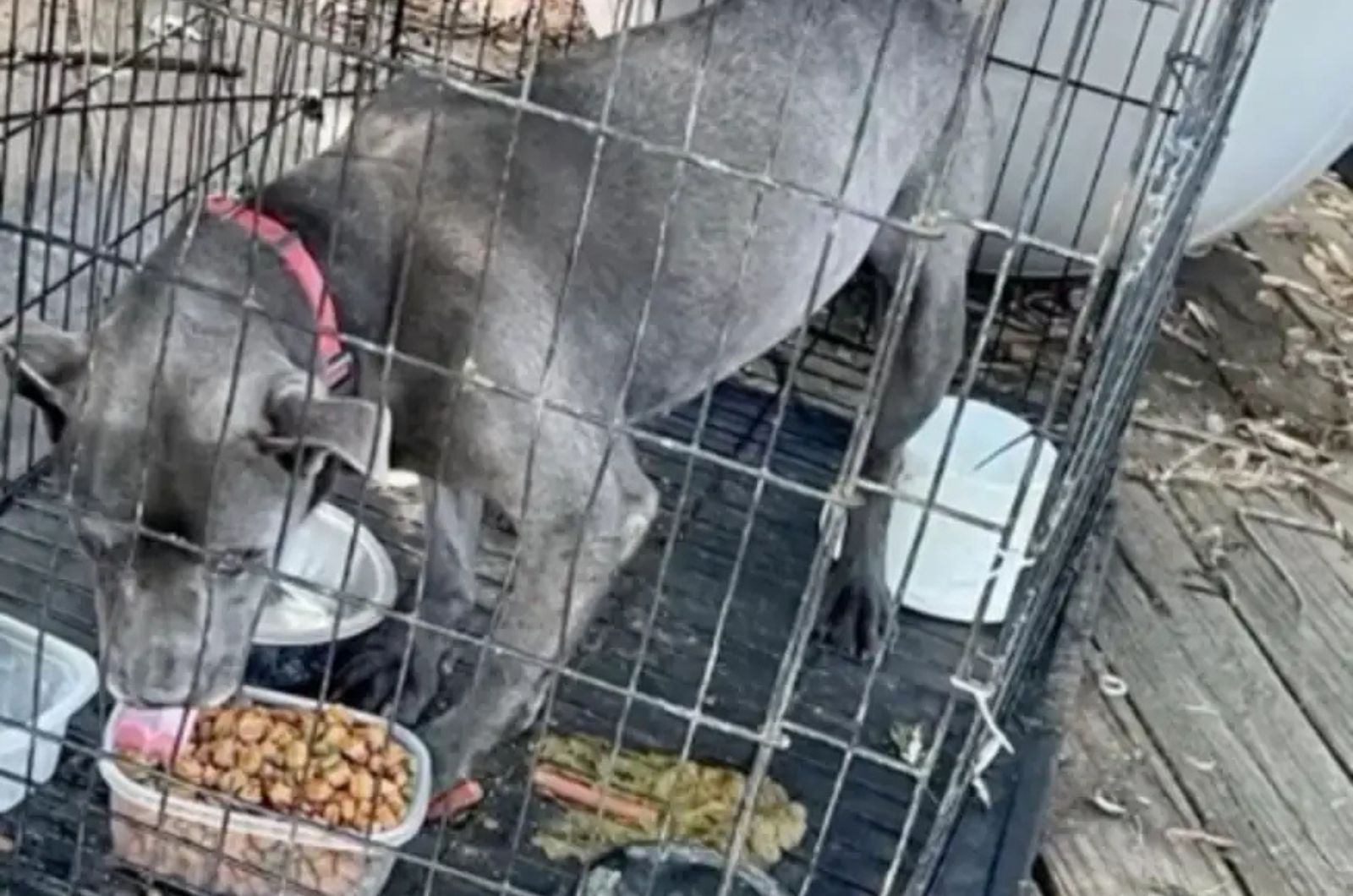 Her owners left her in a dirty crate in the backyard, alone and forgotten.
