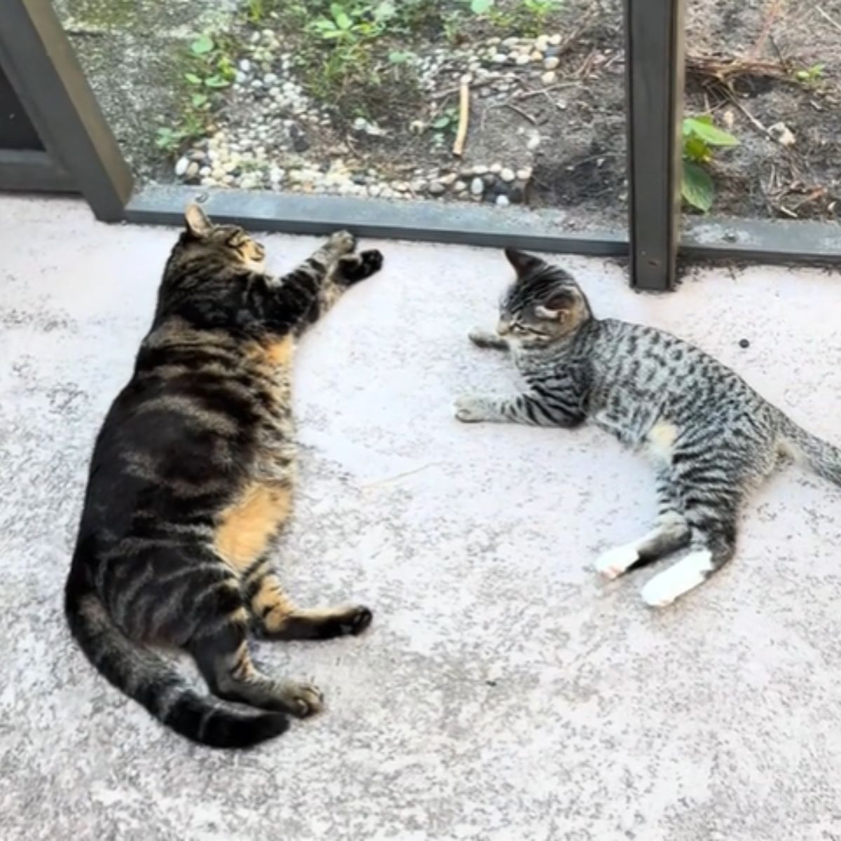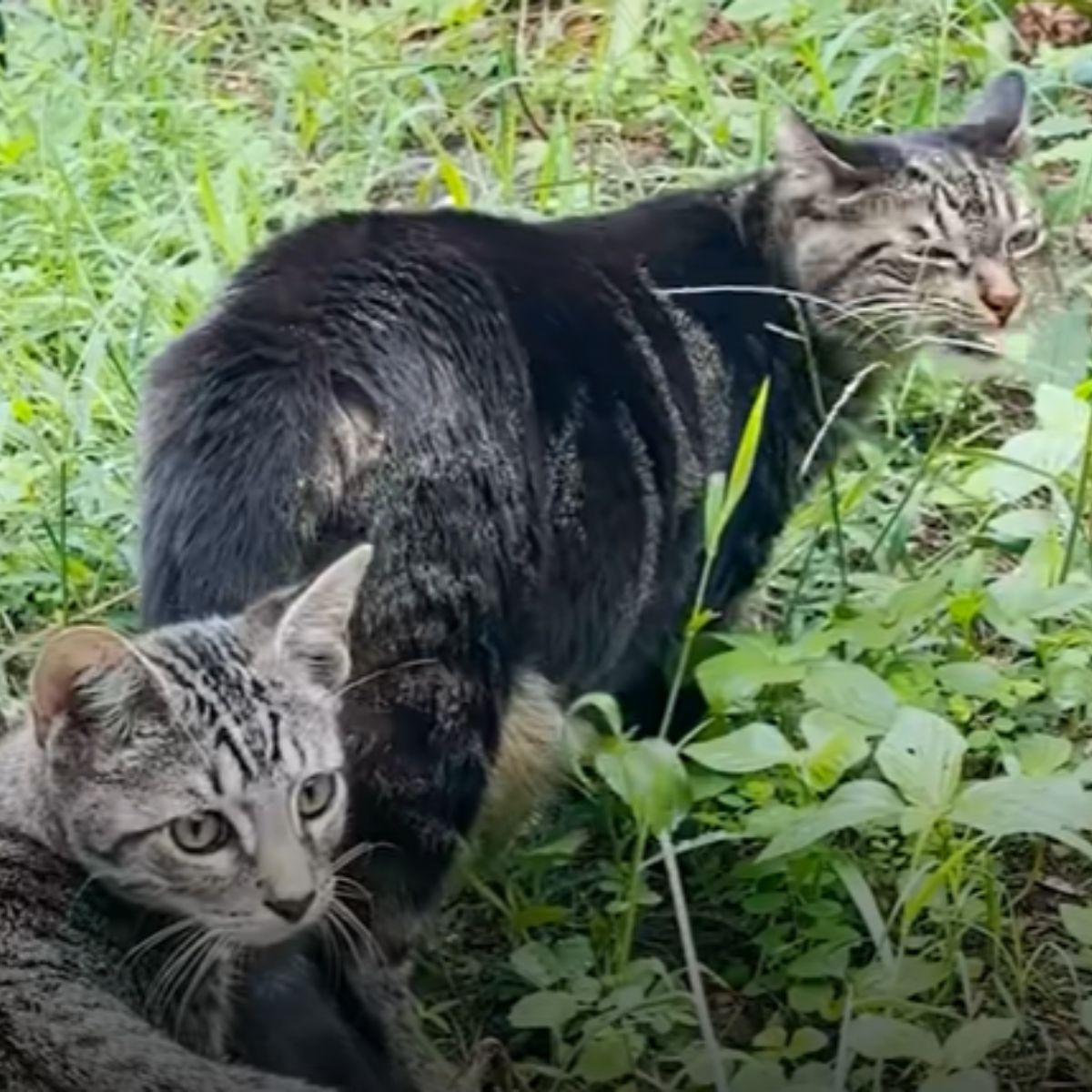 Over the following days, their relationship improved steadily. The cats began exploring the outdoors together, with Silo cautiously testing Aiko’s limits. Each day brought small victories.