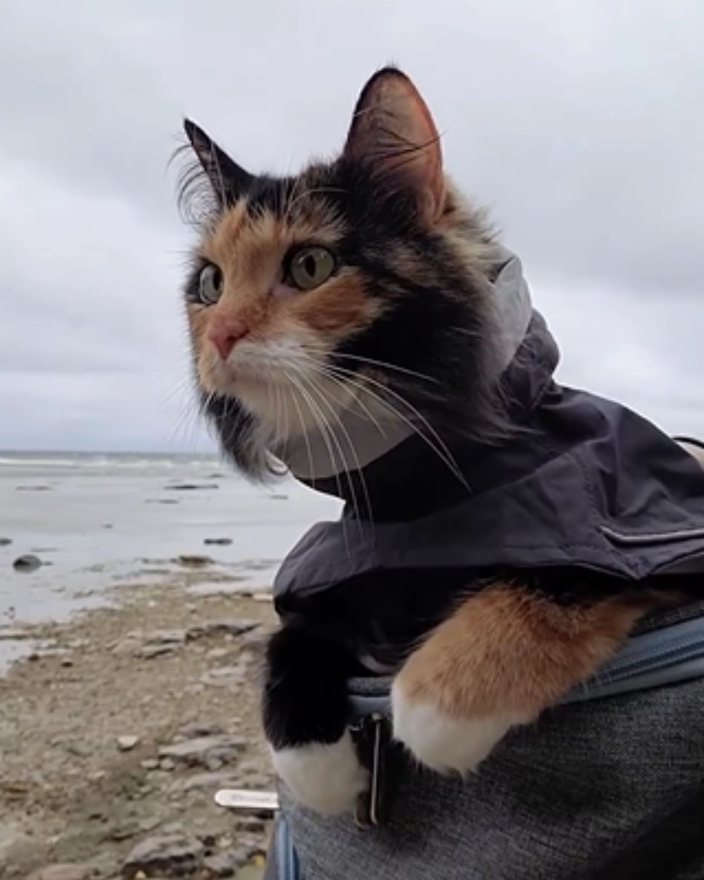 “We do a lot of hiking with her. She asks to go outside all the time. She’ll meow for like hours to try to go outside.”