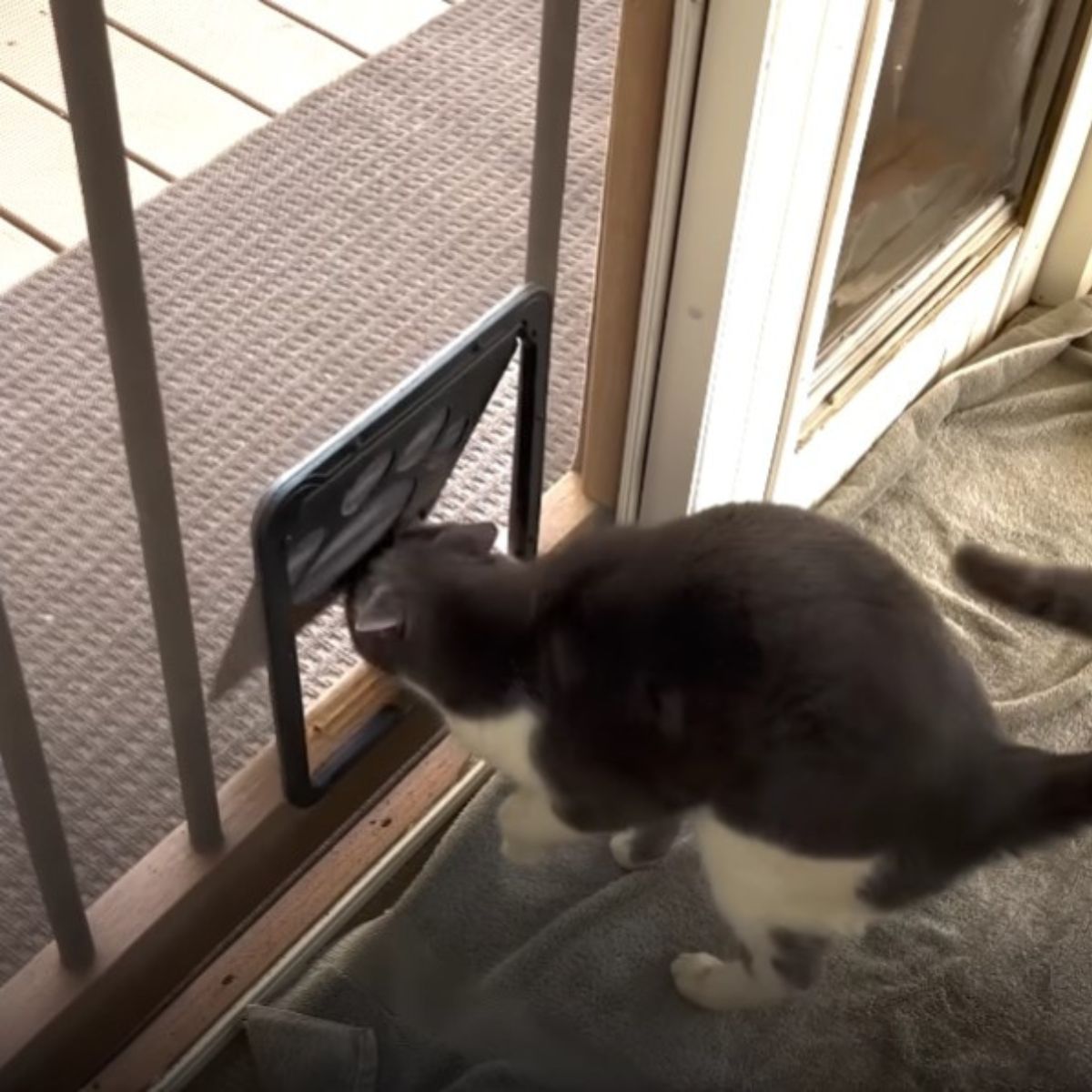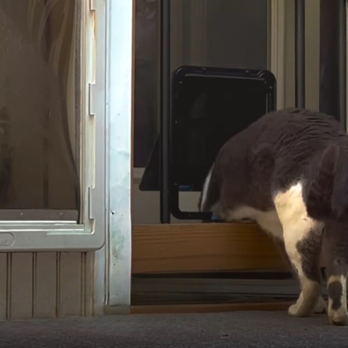 “We ended up installing a little cat door in the screen next to the dog door so that he can come and go.”