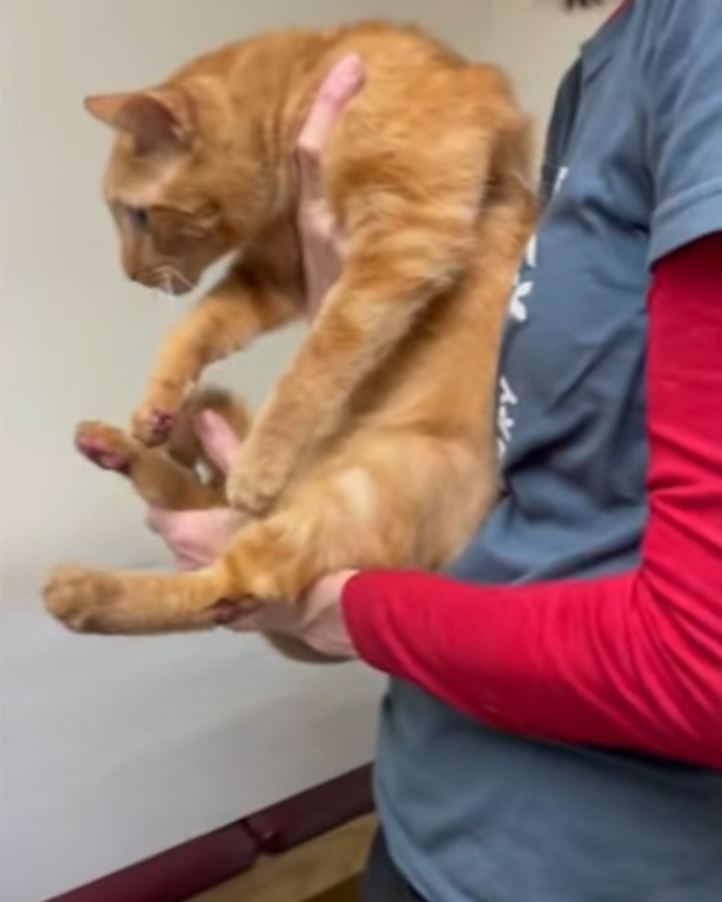 The bond between them was obvious. Goldie had been with him since kittenhood, and in this moment of chaos, he placed his trust in the rescue team to help his best friend.