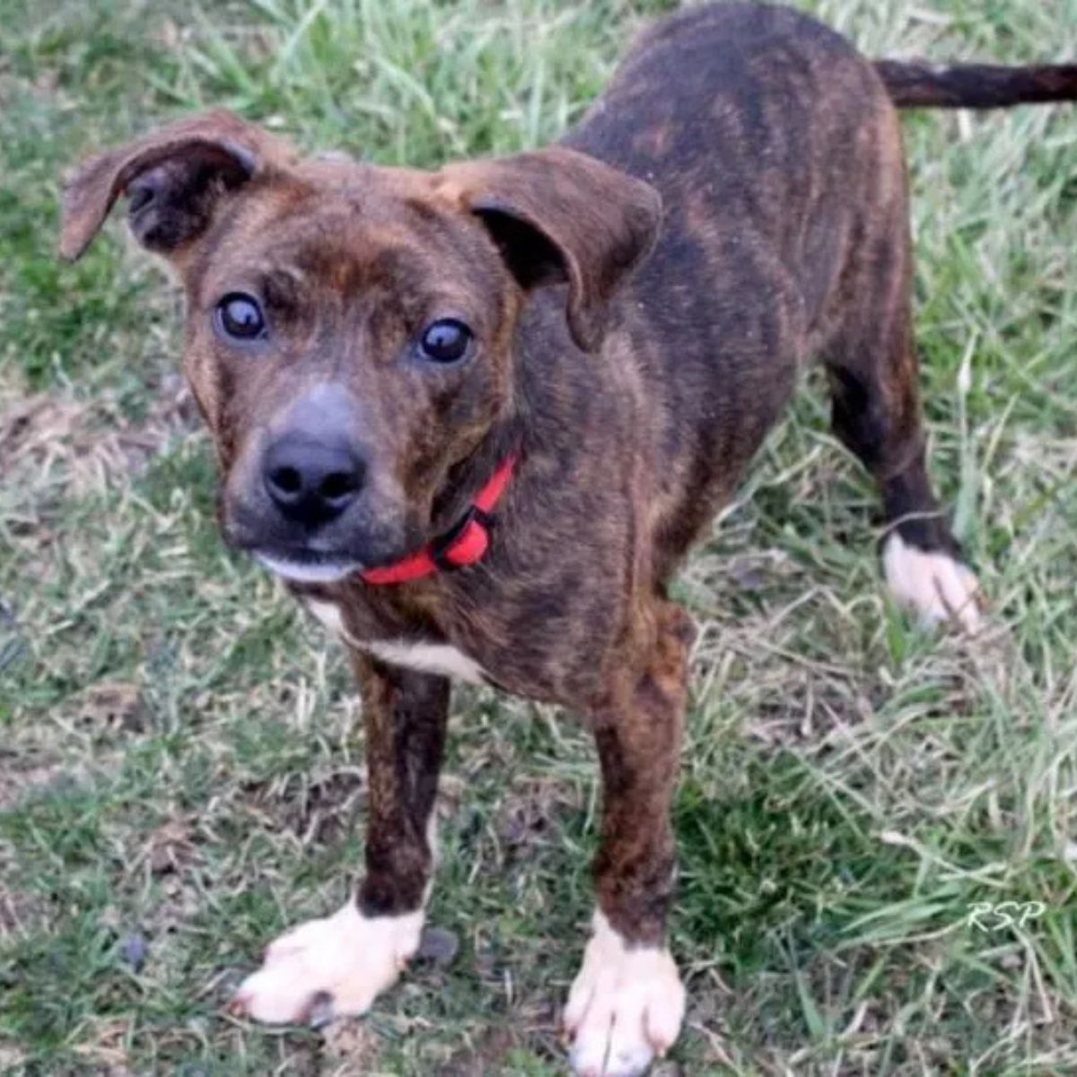 Then he saw him. A small brown dog, sitting low to the ground, looking back at him with frightened eyes.