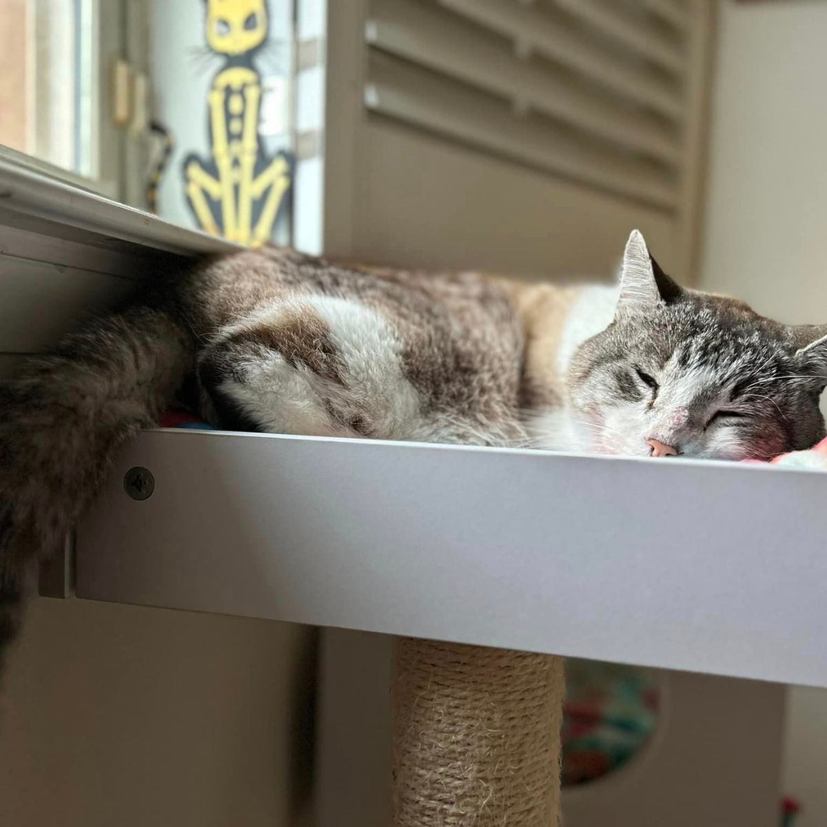 “It’s going to be an adjustment for him for sure. His first 5 years of life inside with catio access and his last 7 years as a free roaming outdoor boy in a colony… After 10 days at the shelter in a small cage, he is definitely relaxing and sleeping a lot now.”