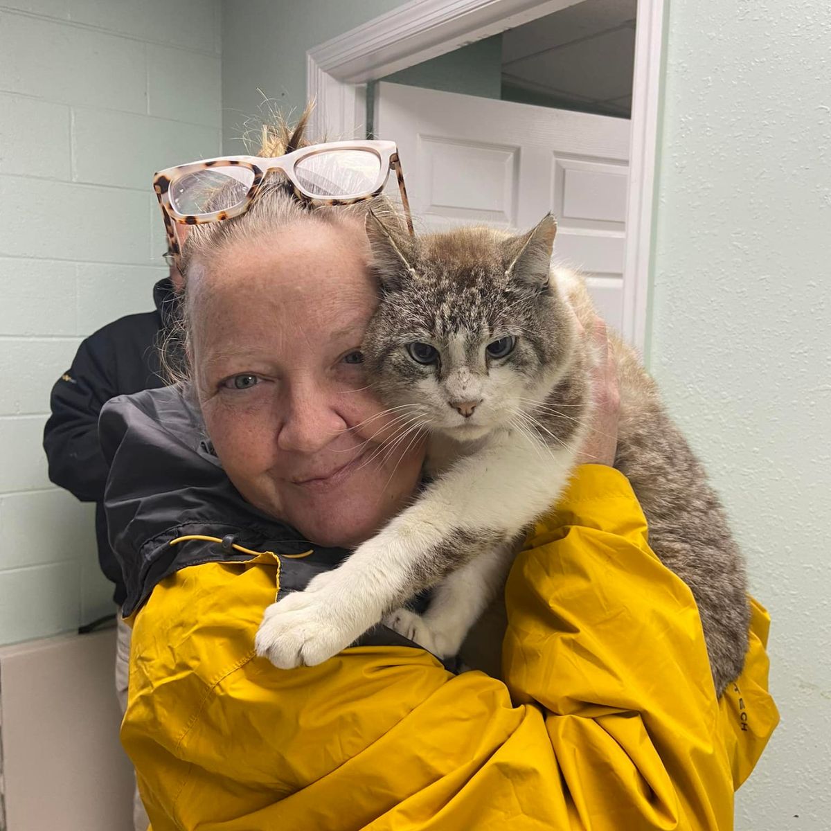 Then, out of the blue, Elizabeth’s world turned upside down. Nearly seven years after Kevin disappeared, she received a text message from 24Petwatch and the Walker County Animal Shelter. Her cat had been found alive and was safe at the shelter.