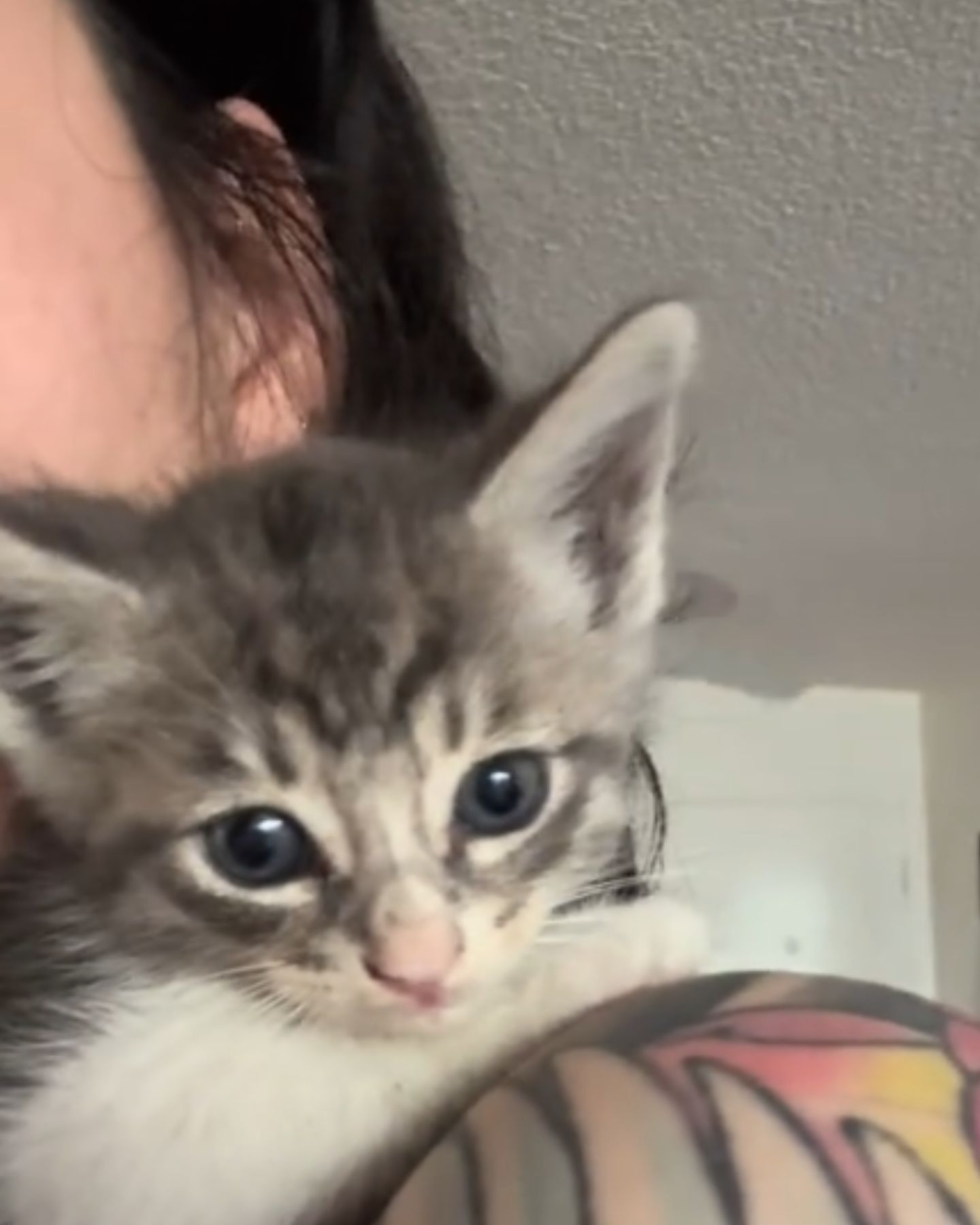 She often fed strays in her neighborhood, so she was ready for moments like this. The kitten didn’t resist; she just seemed too tired to fight. Siena shared: