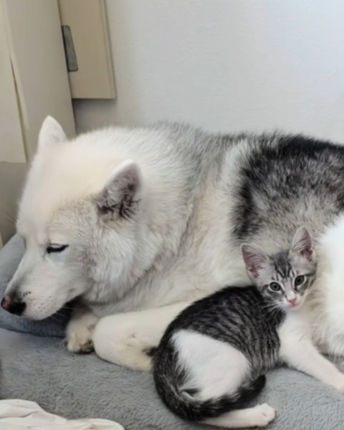 The little one, now named Ashtray, fit right in. She made fast friends with both the family cat and even their dog, and curled up beside them like she’d known them forever.