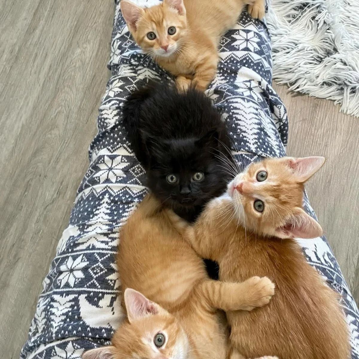 “Some of them had eyes that were stuck shut. They were much smaller than your typical five-week-old kittens, and the girls, in particular, were very bony. Thankfully, they were all great eaters, so within a few days, they had already started to fill out.”