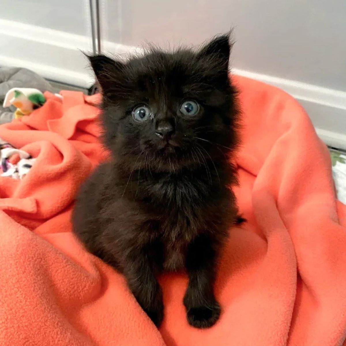Thankfully, foster volunteer Penny Richards stepped in to help, opening her home to the fragile group, unaware that her little ginger crew was about to gain an unexpected black-furred sibling.