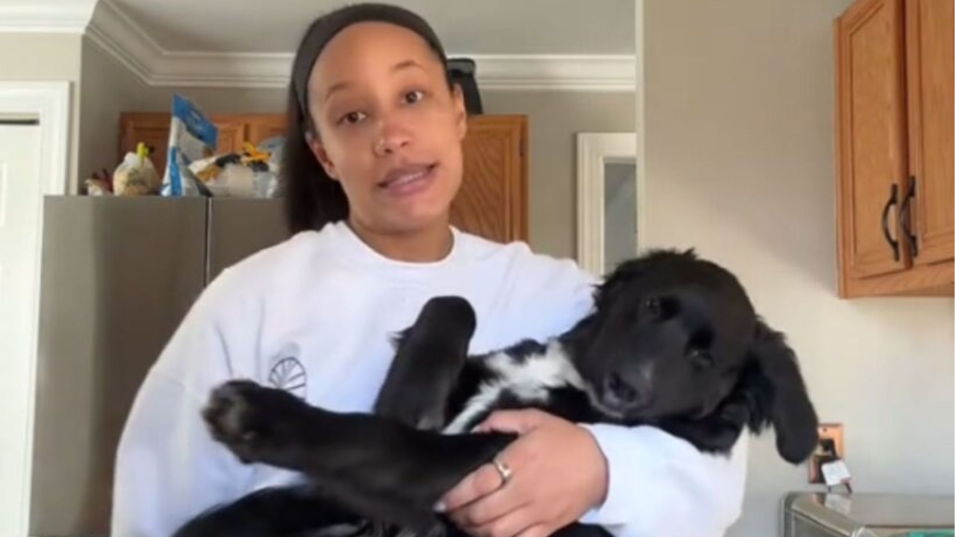 In the video, she shared a few details about Kona, like his age and weight, and gave viewers a better look at his adorable face, white-spotted belly, and those playful paws.