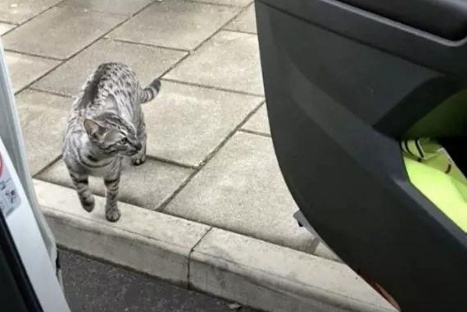 Daniel was completely taken aback to see his cat wandering so far from home all by himself.