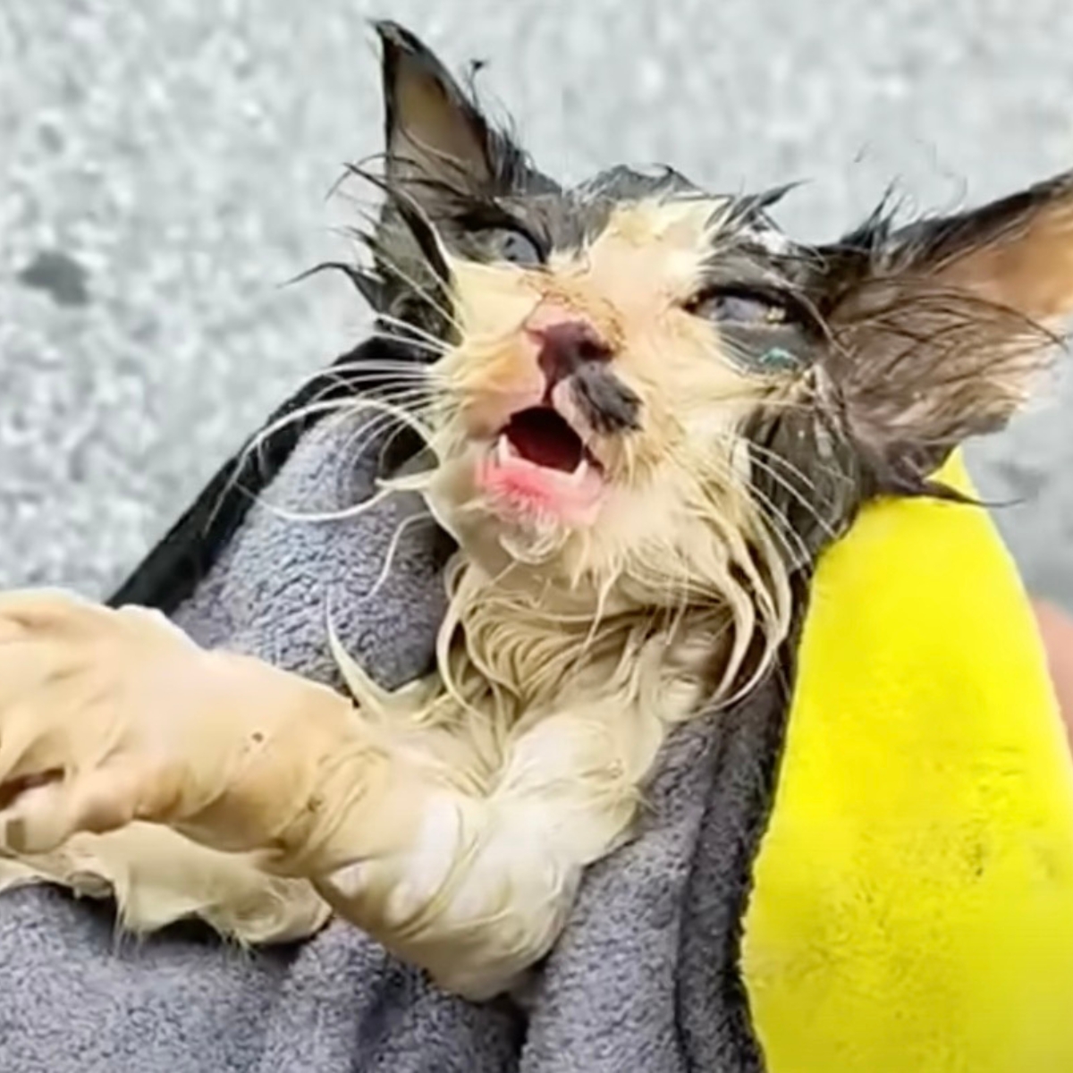 Still, he refused to walk away. Rushing to grab a towel, he gently picked up the fragile kitten and wrapped him for warmth. Just as he lifted the tiny body, he heard the faintest sound, a weak meow.