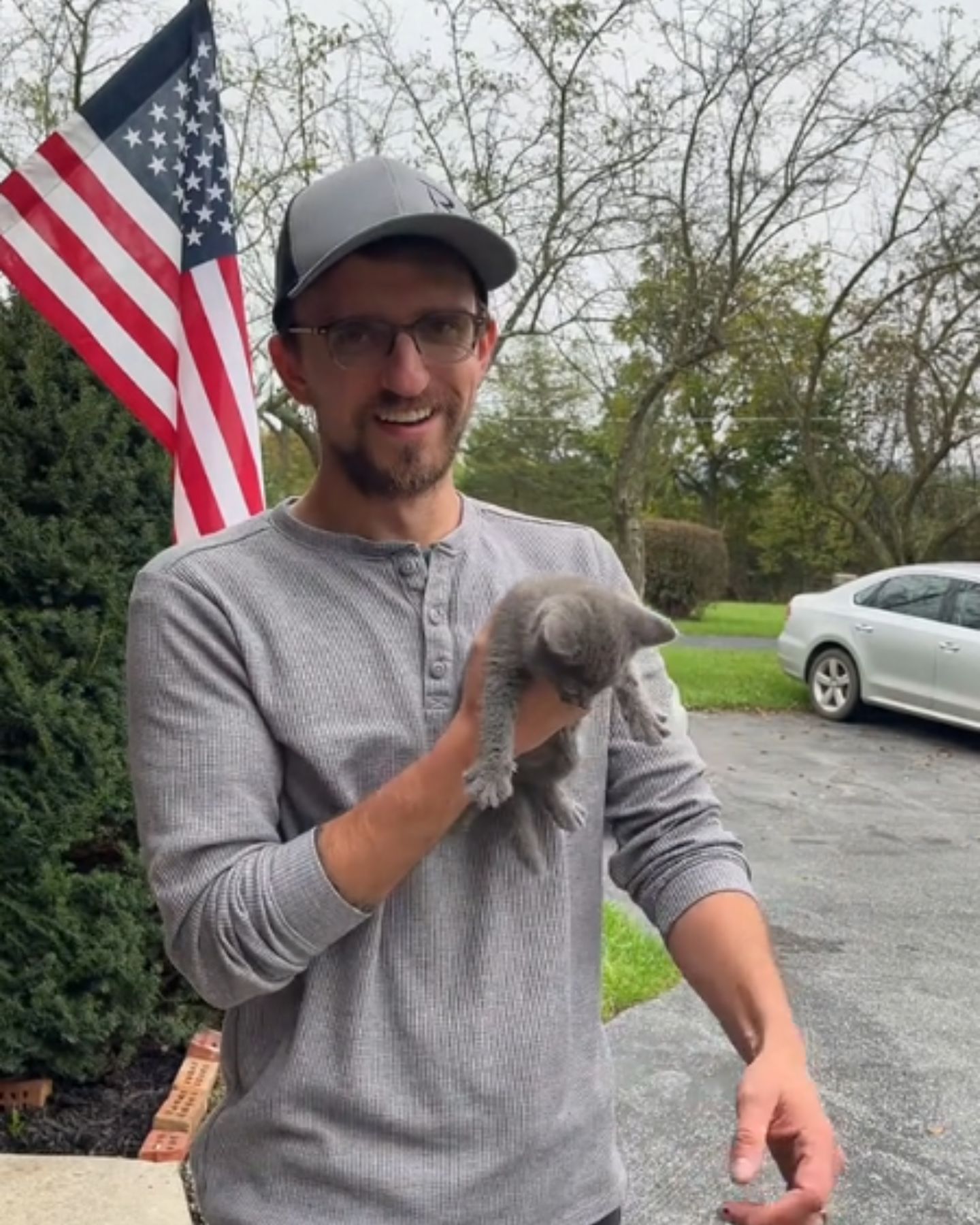 A moment later, Janna stepped outside and found her husband grinning from ear to ear with the kitten cradled in his arms. That’s when Roman said it, with the kind of smile you can’t fake: