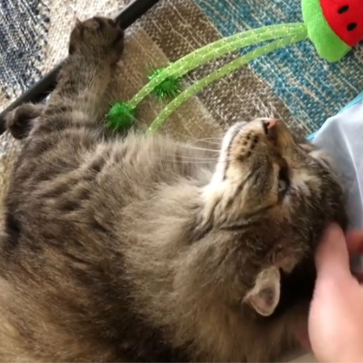 What was once a wary, untouchable feral cat now cuddles constantly with his mom. He even discovered his own musical talents, singing little songs that reflect his moods. Jenna shared: