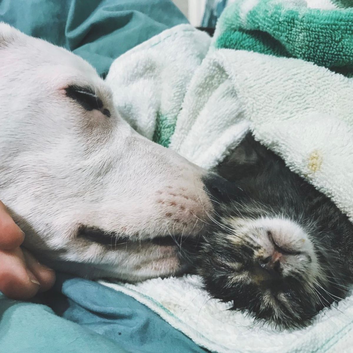 It’s clear that Gatsby became more than a friend, he became Minerva’s guardian and protector. Thanks to Erin’s compassion and Gatsby’s gentle heart, a dying kitten not only survived but thrived.
