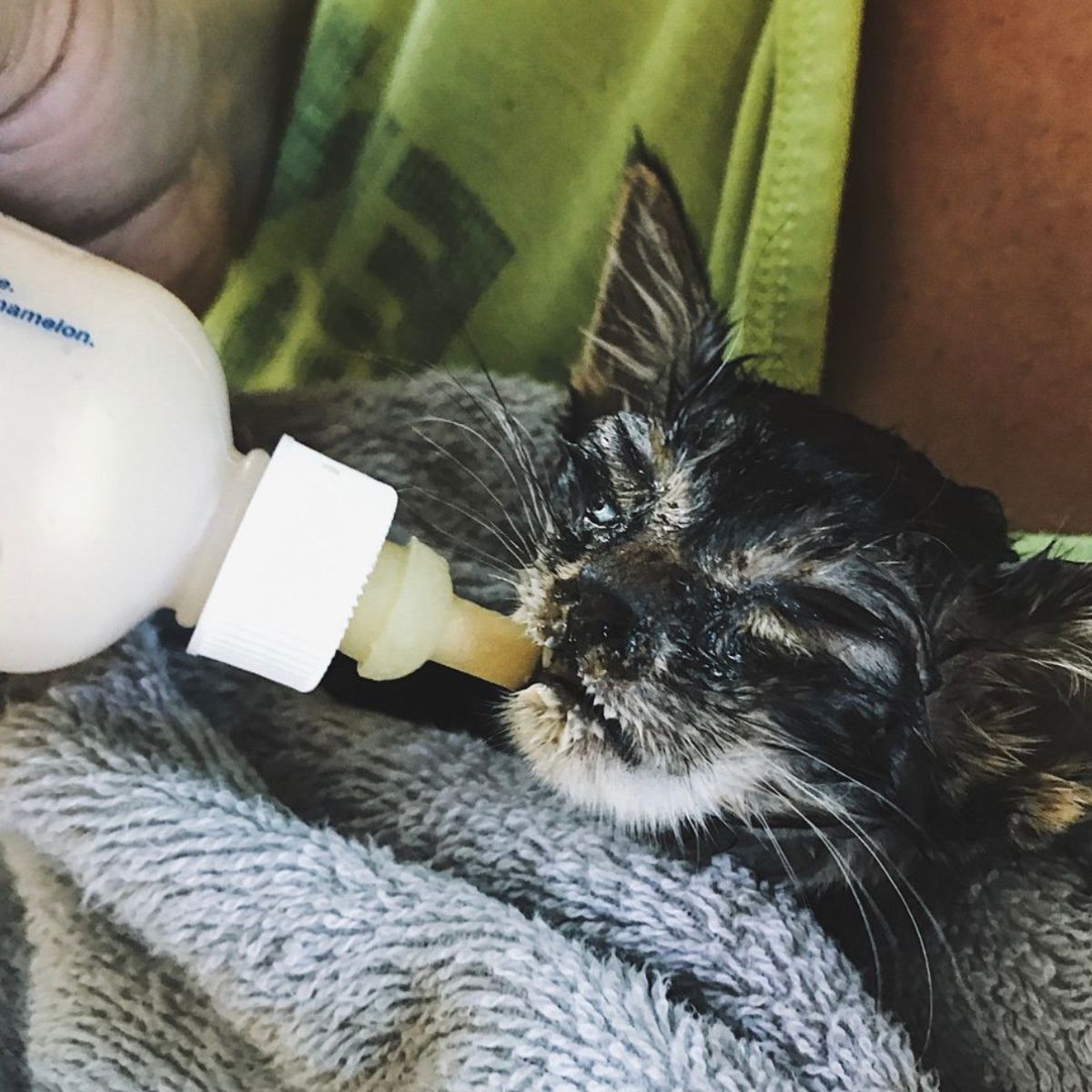 Erin and her husband knew the odds weren’t good, but they stayed up all night feeding her tiny drops of milk and keeping her warm. When morning came and she was still breathing, they wasted no time getting her to the vet.