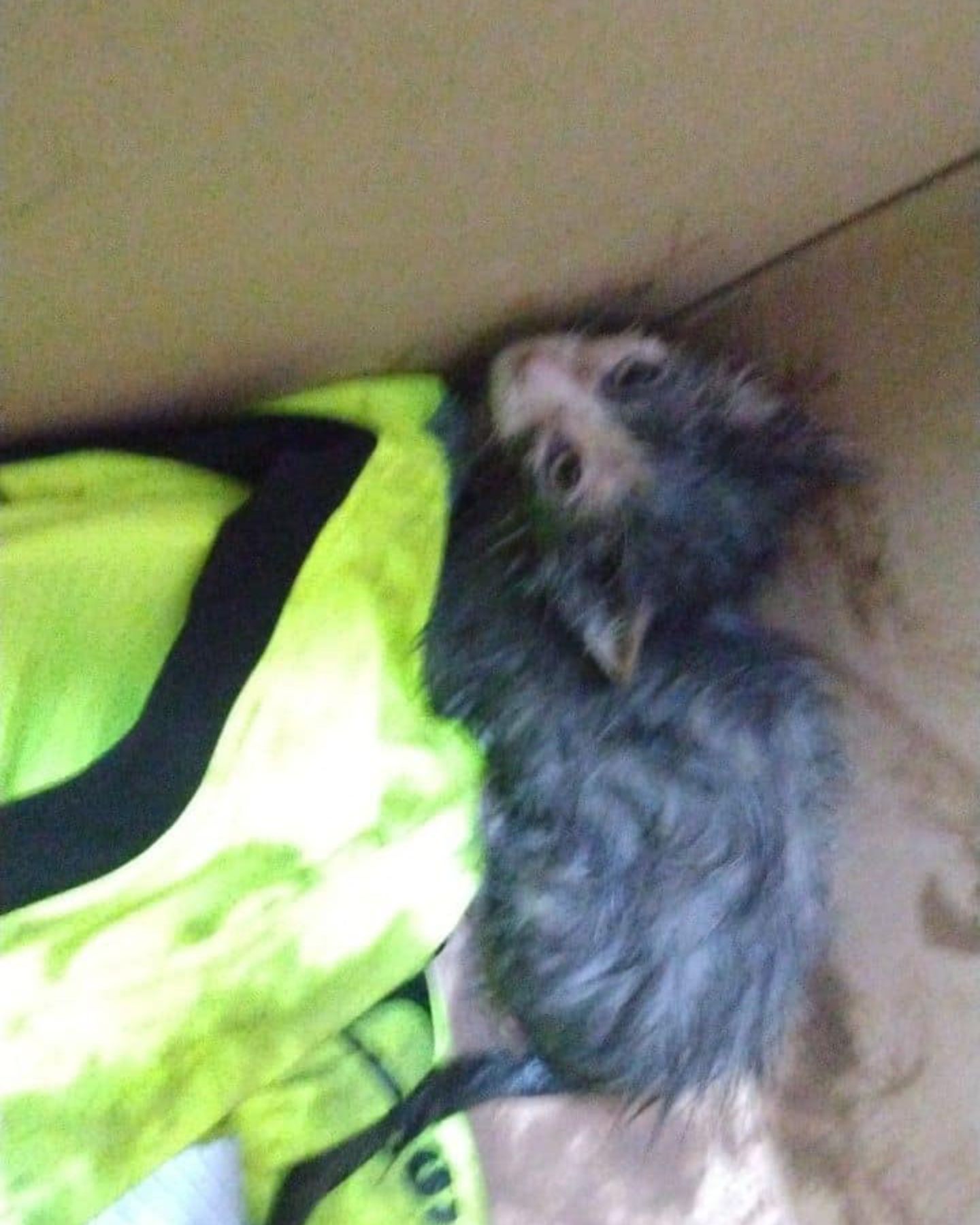 Mark reached for the kitten, cradling her fragile body in his hands. She was terrified and trembling, but safe, as Mark shared: