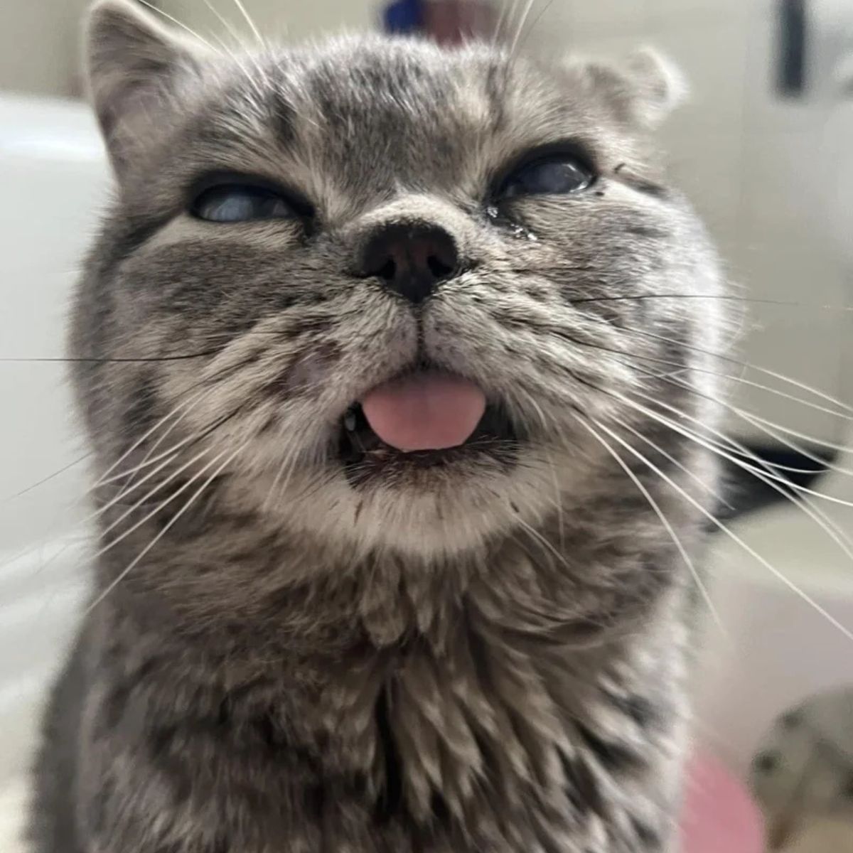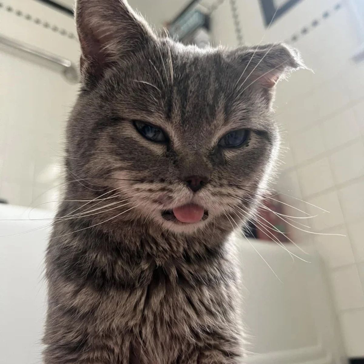 With proper care, he transformed into a cat with a look all his own – just four teeth, a bent ear, and a tongue that always peeked out. None of this dimmed his spirit.