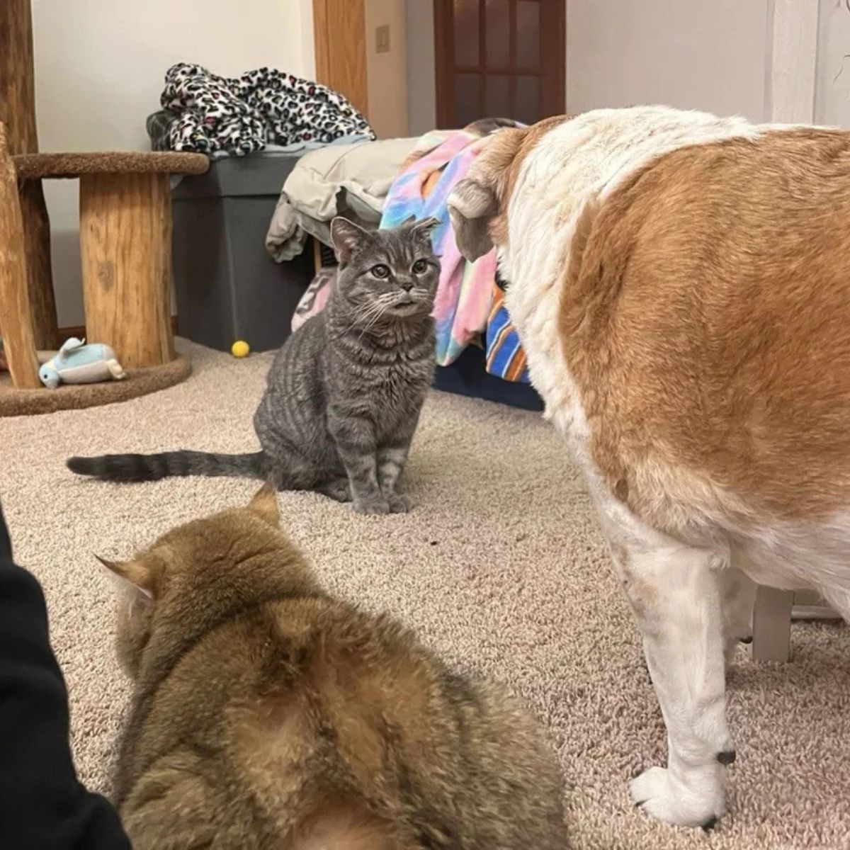 It didn’t take long for Steve to feel at home in his new surroundings. He quickly formed a bond with both his dog and cat siblings, winning them over with his sweet nature.