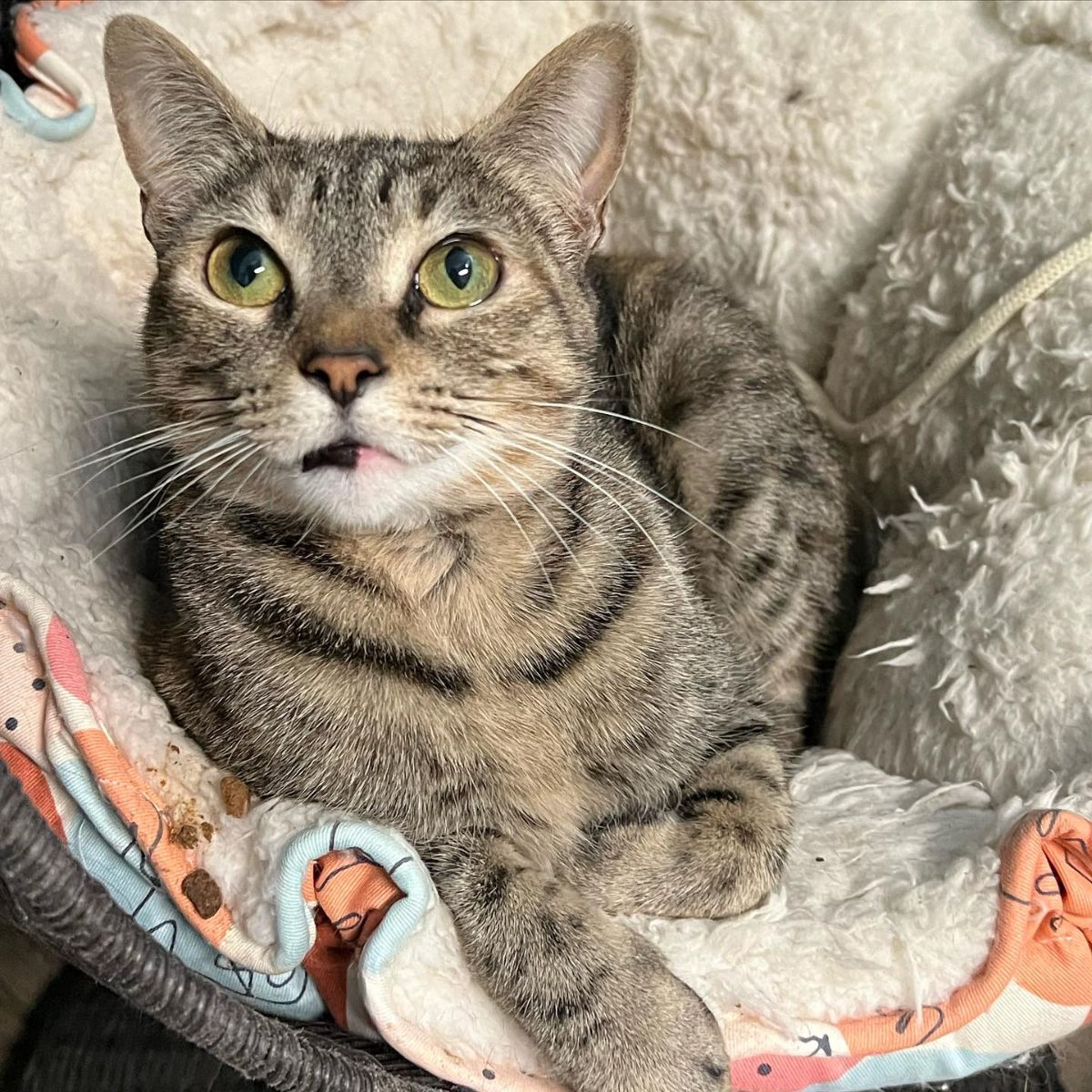 Meet Lennox, a shy little tabby who struggled a bit more than her siblings to find her forever home. While her brothers and sisters were quickly adopted, Lennox needed extra time, patience, and understanding to truly come out of her shell.