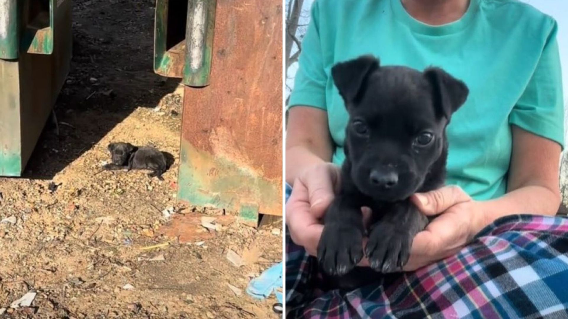 Nearly an hour passed before she finally spotted him. The tiny pup was huddled near the dumpster, shaking from fear and hunger. He was still alive, still waiting, and this time, help had truly arrived.