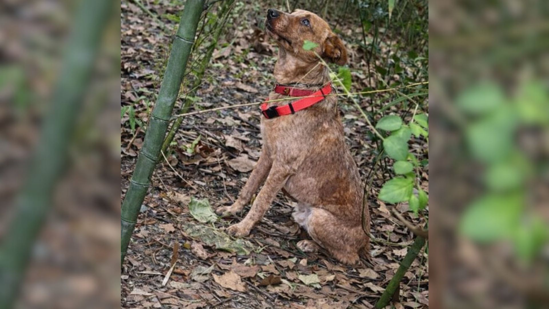 That’s when they saw a thin, terrified dog, chained to a bamboo tree and clearly waiting for help.