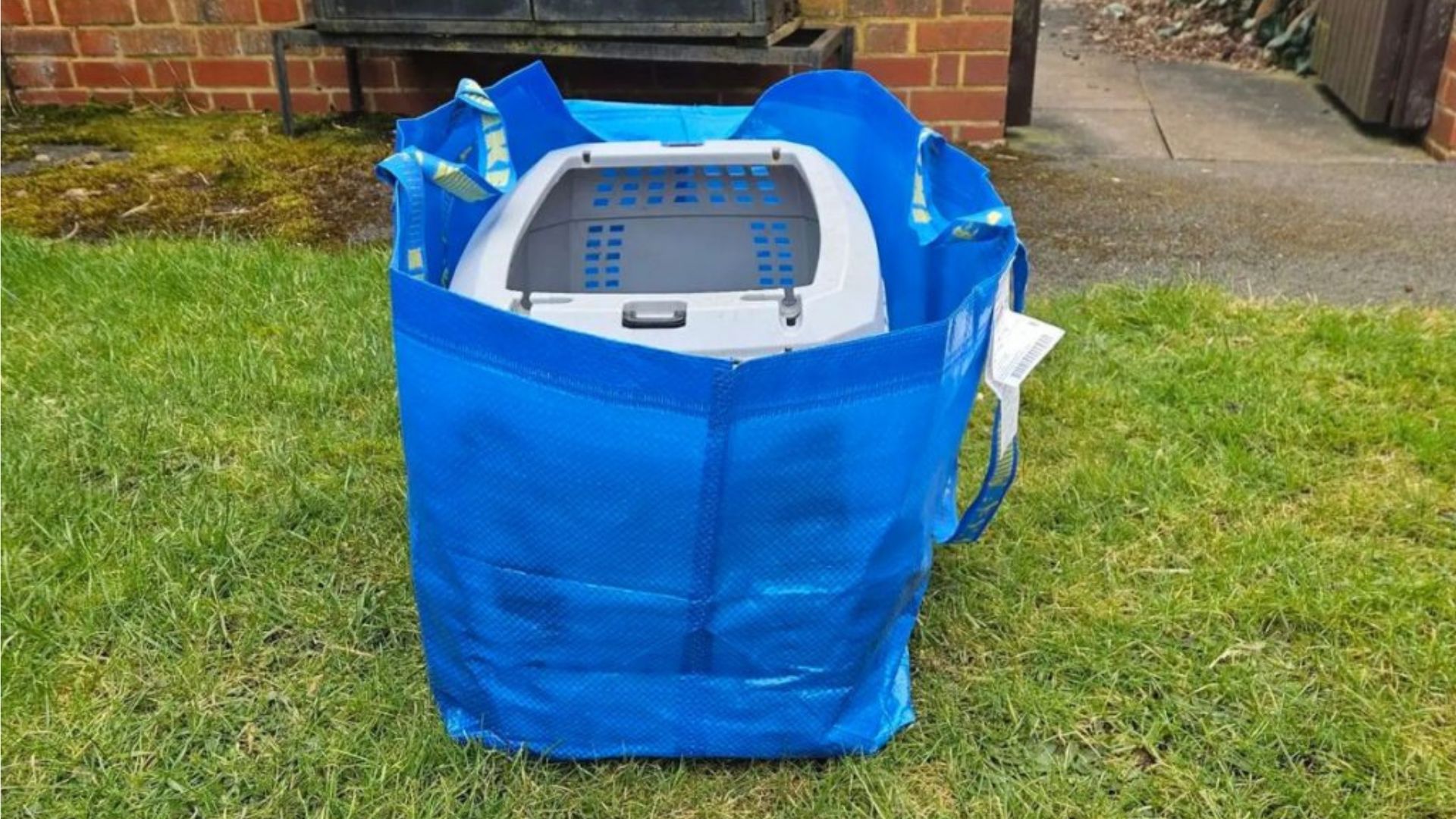 As they made their rounds through the parking lot, something immediately caught their attention: a blue Ikea bag sitting alone in the middle of the pavement.