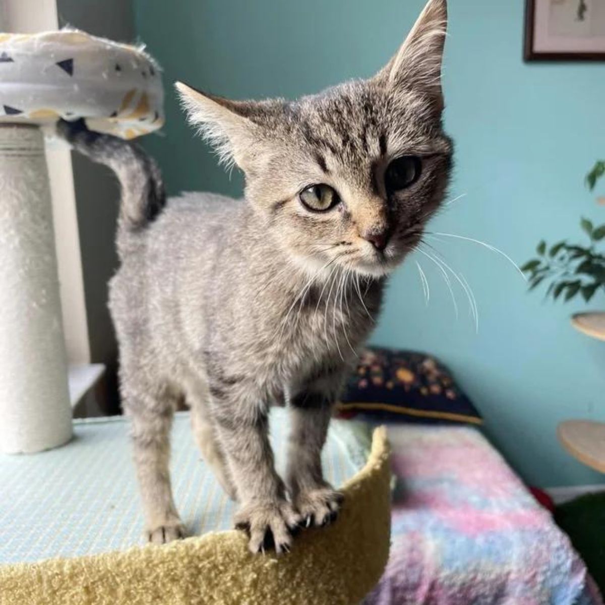 When she’s not seeking out affection, she enjoys perching on her cat tree by the window, soaking up the sunshine, or curling up in her cozy bed with a soft blanket wrapped around her.