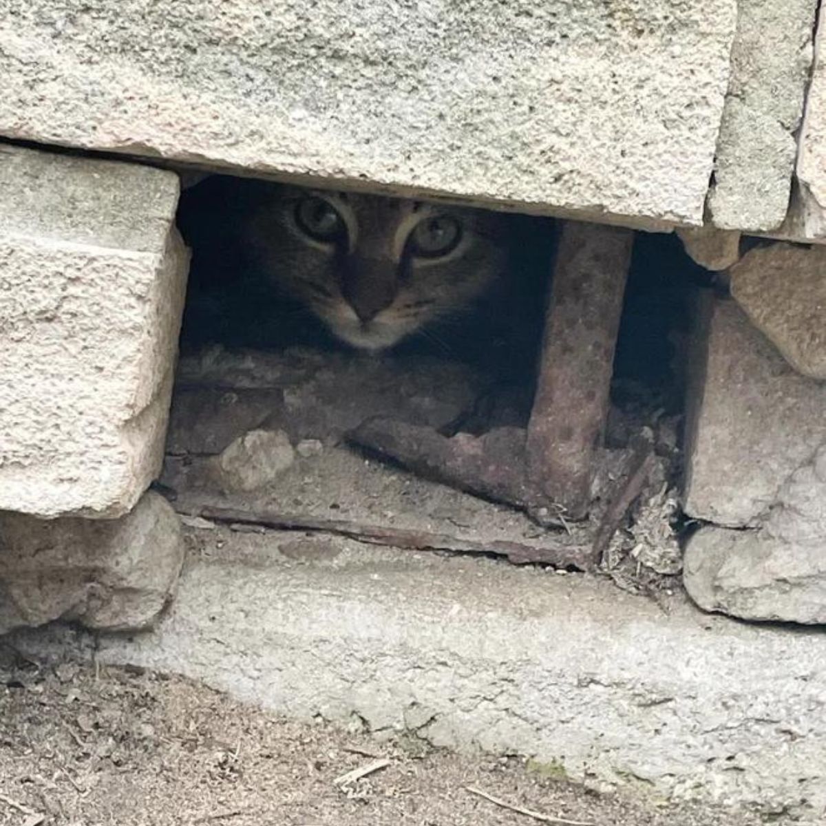 “It was going to be so cold that night, so I went right away and spent an hour in the rain coaxing her out of the wall. She would meow at me and reach her paws out to me, so I knew I just needed to give her time. She wanted so desperately to be out of the elements.”