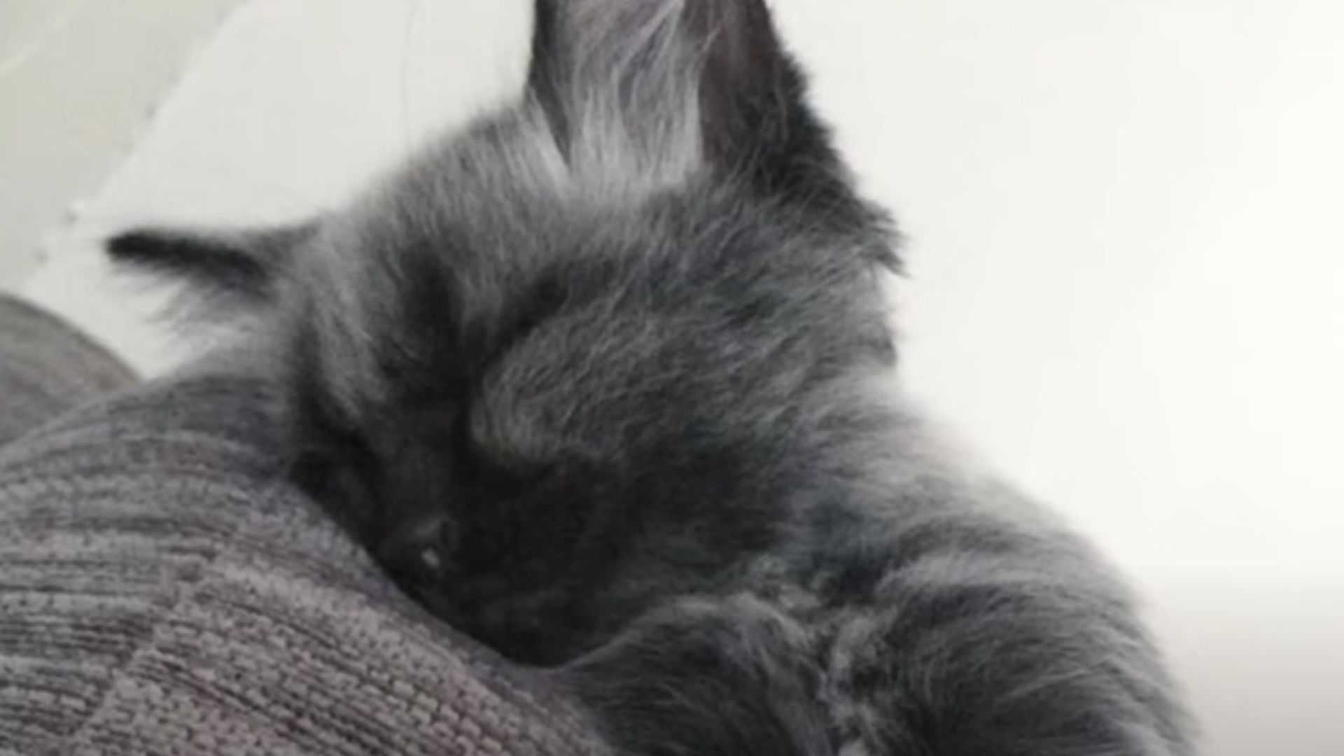 Months later, the kitten surprised everyone again. His once-silver coat had gradually darkened into a rich black, leaving only a small white patch on his chest. While his appearance changed, his sweet, loving personality remained constant.